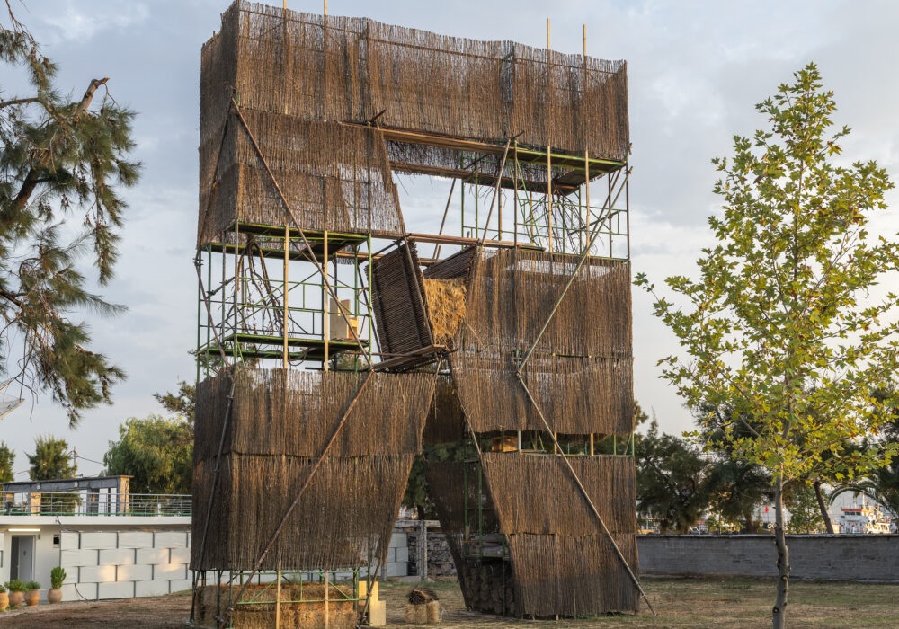 Έργο παρακαταθήκης της εικαστικής έκθεσης Μυστήριο_77 Πίσω από το Θέατρο του Ανδρέα Λόλη, που συνδιοργάνωσε την περασμένη χρονιά η 2023 Ελευσίς με το Φεστιβάλ Αισχύλεια, η εικαστική σύνθεση των μαρμάρινων καλαμιών που φέρει τον τίτλο «Το απέναντι του εμπρός» κοσμεί πλέον τη μικρή αυλή του Παλαιού Δημαρχείου της Ελευσίνας.