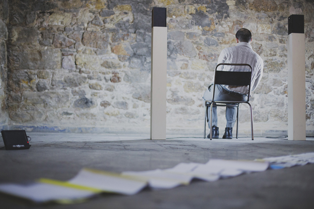 Αντώνης Αντωνόπουλος: Στην παράσταση ένα πολύ ισχυρό στοιχείο είναι το βίντεο. Υπάρχει ένα βιντεοσκοπημένο υλικό δράσεων στο οποίο πρωταγωνιστεί ο πατέρας μου. Μέσω αυτού φτιάχνω μια μελλοντική εκδοχή του προσώπου, του Κραπ. Δημιουργούμε ένα διάλογο μεταξύ του Κραπ και της προβολής. Προσπαθούμε να συνθέσουμε δύο σκηνικούς χρόνους στην παράσταση. Ο Κραπ απέναντι στον εαυτό του. Μαζί με τον Δημήτρη Καμαρωτό αποφασίσαμε όλες οι μαγνητοταινίες να ηχογραφούνται ζωντανά. Να παρακολουθούμε τον Κραπ να αφηγείται τη ζωή του στα 39 και στα 69 του χρόνια.