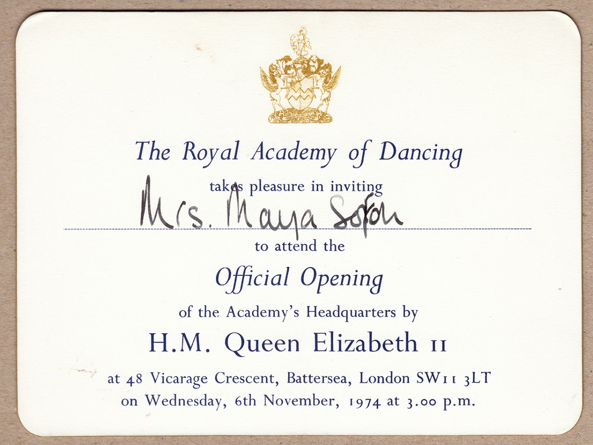 Η επέτειος 50 χρόνων συνεργασίας της Ελλάδας με την Βασιλική Ακαδημία Χορού του Λονδίνου (Royal Academy of Dance – RAD) γιορτάζεται στις 17-20 Οκτωβρίου στις αίθουσες του Συλλόγου «Οι Φίλοι της Μουσικής» στο Μέγαρο Μουσικής Αθηνών, υπό την αιγίδα της Βρετανικής Πρεσβείας στην Αθήνα και την συνεργασία του British Council, με οργανωτική ευθύνη της χορογράφου και καθηγήτριας χορού Μάγιας Σοφού η οποία με όραμα και πρωτοπορία εφάρμοσε το Αγγλικό εκπαιδευτικό σύστημα μπαλέτου της RAD στην σχολή της και το έκανε γνωστό στην χώρα μας. Η Royal Academy τιμά και βραβεύει τη Μάγια Σοφού για την προσφορά της στην τέχνη του χορού με την ανακήρυξη της σε “Fellow of the Royal Academy of Dance” που είναι η υψηλότερη διάκριση που απονέμει η Ακαδημία σε Καθηγητές Χορού.