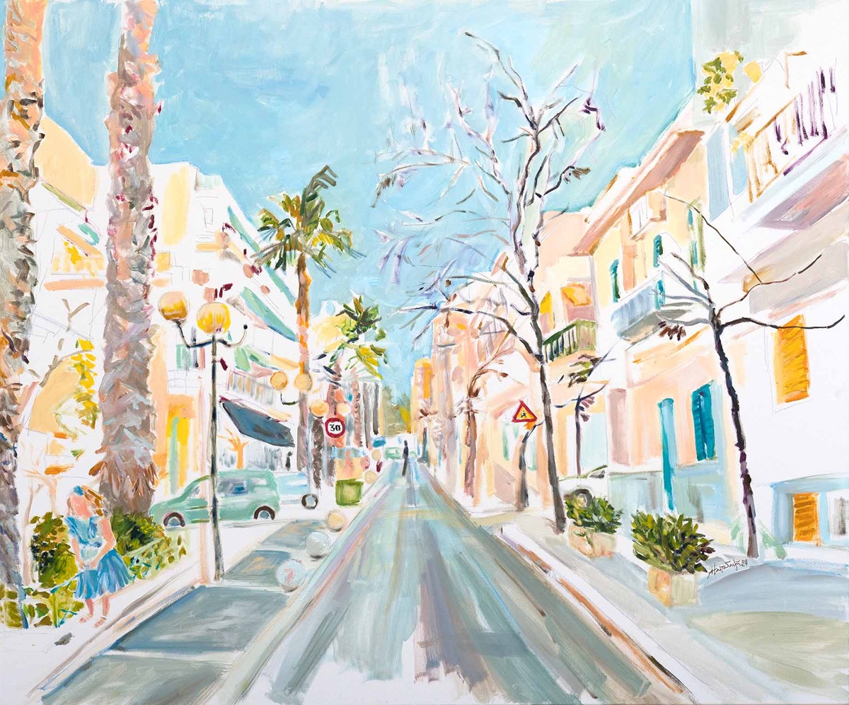 Στον αντίποδα της μελαγχολικής διάθεσης που διαπνέει τα έργα αυτά, η επόμενη ενότητα αποτυπώνει μία παλλόμενη, γεμάτη ζωντάνια ατμόσφαιρα με τα λαμπερά, σχεδόν fauve χρώματα που συνυπάρχουν σε εκρηκτικούς συνδυασμούς. Το βλέμμα της ζωγράφου αγκαλιάζει με τρυφερότητα αγαπημένα σε όλους μας σημεία στην πόλη, από το Μουσείο Κυκλαδικής Τέχνης στη Βασιλίσσης Σοφίας μέχρι στέκια για καφέ και ποτό στα Εξάρχεια και το Παγκράτι. Ανθρώπινες μορφές ενοικούν τα έργα αυτά, σε στιγμές χαλαρής κοινωνικότητας, συνομιλώντας, χαζεύοντας τις βιτρίνες ή αφήνοντας το βλέμμα να περιπλανηθεί σε μία πανοραμική άποψη της Πλατείας Ομονοίας από ψηλά.