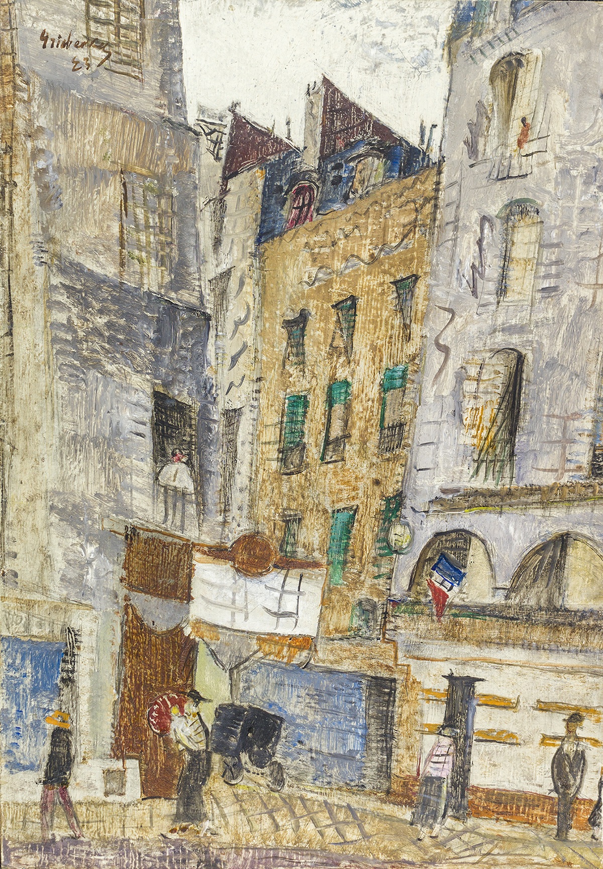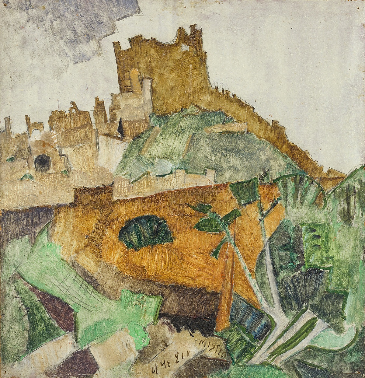 Ο Alexis Gritchenko (Krolevets, σημερινή Ουκρανία, 1883 – Vence, Γαλλία, 1977) ήταν Ουκρανός ζωγράφος και θεωρητικός της τέχνης, του οποίου το έργο συνδύασε τη βυζαντινή παράδοση με τη μοντερνιστική αισθητική. Σπούδασε αρχικά φιλολογία και βιολογία στα πανεπιστήμια του Κιέβου, της Αγίας Πετρούπολης και της Μόσχας, προτού αφοσιωθεί στην τέχνη. Η επίσκεψή του στο Παρίσι το 1911 αφύπνισε τον ενθουσιασμό του για τη μοντέρνα τέχνη, ιδιαίτερα τον Κυβισμό, ενώ τα ταξίδια του στην Ιταλία το 1913–14 τον ενέπνευσαν να συνδυάσει τις χωρικές και χρωματικές αρχές της πρώιμης Αναγέννησης με τα πνευματικά και μορφολογικά χαρακτηριστικά της βυζαντινής τέχνης. Τα θεωρητικά του κείμενα εξερευνούσαν τη σχέση ανάμεσα στη βυζαντινή και τη σύγχρονη τέχνη, αναλύοντας τις μορφολογικές και δομικές τους συγγένειες. Μετά την Επανάσταση του 1917, ο Gritchenko έγινε καθηγητής στα Ελεύθερα Καλλιτεχνικά Εργαστήρια (Svomas) της Μόσχας και μέλος της Επιτροπής για τη Διατήρηση των Ιστορικών Μνημείων. Αν και του προτάθηκε το 1919 η διεύθυνση της Πινακοθήκης Tretyakov, προτίμησε να εγκαταλείψει τη Ρωσία, ταξιδεύοντας μέσω Κριμαίας στην Κωνσταντινούπολη και αφήνοντας πίσω του όλα τα έργα και τα υπάρχοντά του στη Μόσχα. Τον Απρίλιο του 1921 εγκαταστάθηκε στην Ελλάδα, όπου έζησε για μεγάλα διαστήματα έως τον Οκτώβριο του 1923, πραγματοποιώντας δύο εκθέσεις στην Αθήνα: στη Φιλολογική Εταιρεία «Παρνασσός» (1921) και στο Βυζαντινό και Χριστιανικό Μουσείο (1922). Στις εκθέσεις αυτές παρουσίασε μια εικόνα της Ελλάδας διαφορετική από την κλασική: αρχαία ερείπια, εκκλησίες και τοπία αποδοσμένα με αιχμηρά κυβιστικά επίπεδα και εκρηκτικά, πνευματικά χρώματα. Από τον Οκτώβριο του 1923 εγκαταστάθηκε μόνιμα στη Γαλλία, όπου εξέθετε σε σημαντικές γκαλερί και ταξίδευε συχνά στην Ευρώπη και τις Ηνωμένες Πολιτείες, έως τον θάνατό του στο Vence, κοντά στη Νίκαια, το 1977.