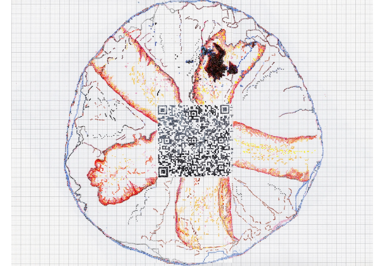 Αξίζει να αναφερθεί ότι σε κάποια από τα σχέδιά της παρατηρεί κανείς έναν χειροποίητο κωδικό QR, δομημένο και αυτόν από μικροσκοπικά στοιχεία. Το ψηφιακό αποτύπωμα αυτών των κωδικών σχηματίζει όταν το “διαβάσεις” μέσω ενός κινητού μια μικρή αφήγηση, ένα ακόμα έργο, αφετηρία του οποίου είναι μία ιστορία που είχε ακούσει στην παιδική της ηλικία: «Αν θέλεις να κάνεις μια ευχή για κάποιον που αγαπάς και αυτή να πραγματοποιηθεί, ψιθύρισέ την σε έναν αχινό. Έτσι η ευχή μένει καλά φυλαγμένη και προστατεύει εκείνον για τον οποίο έγινε».