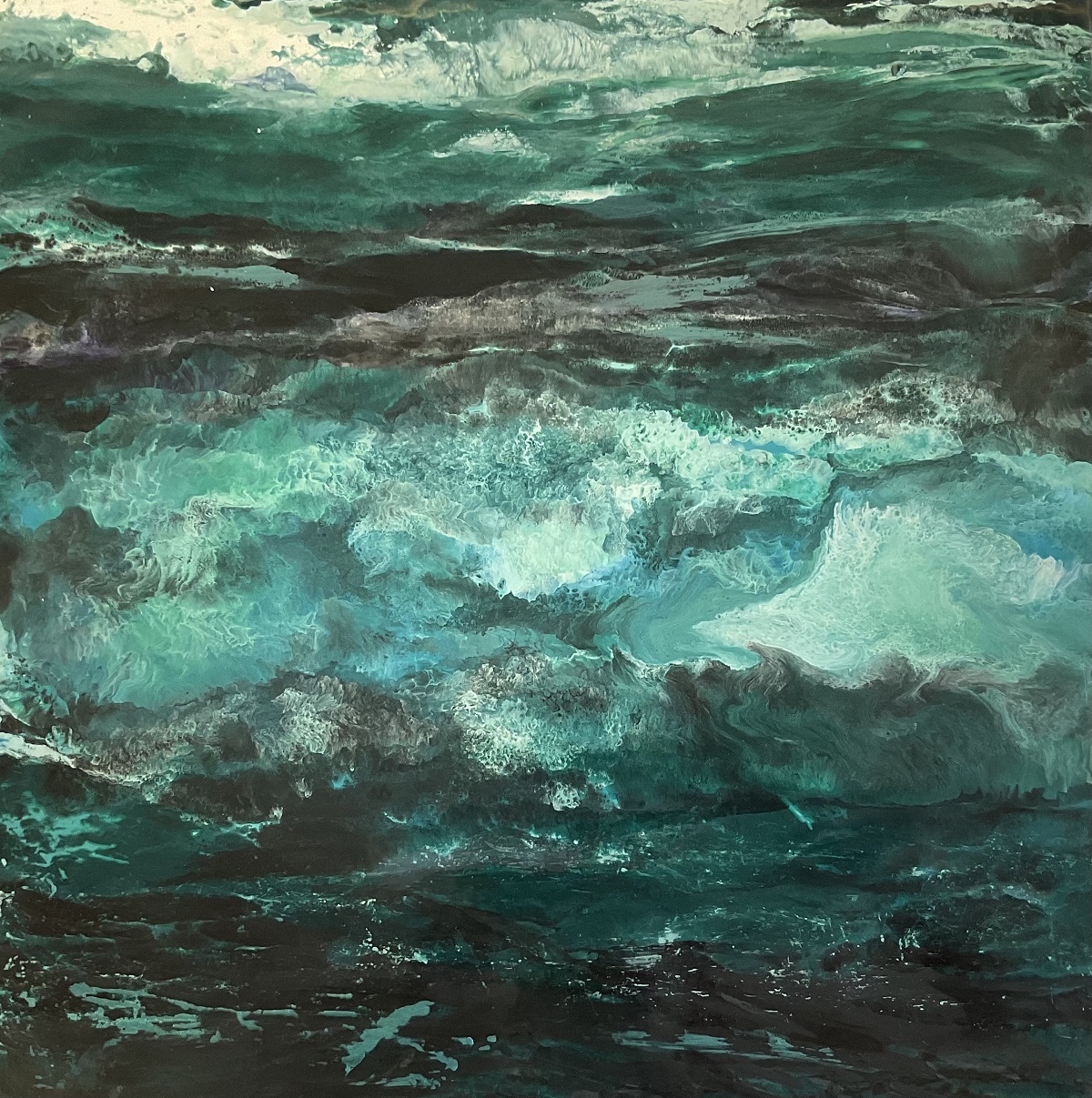 Σε μια πρωτότυπη εγκατάσταση, η θάλασσα ως στικτό οργανικό σώμα, ως τόξο ουράνιο αναρίθμητων αποχρώσεων του μπλε και ως κέλυφος μυστήριο πλασμάτων και μύθων, παρουσιάζεται θριαμβική, χωρίς την ανάγκη αφηγηματικών μέσων. Πλασμένη με ένα συναρπαστικό φάσμα διαφορετικών και αναπάντεχων χροιών και τόνων που ανάγουν στην αρχαία ελληνική ζωγραφική, αντιμετωπίζεται από τη ζωγράφο ως πρωτόπλαστο εύρημα και δημιουργεί έναν μυθώδη κάμπο διαφορετικών ψυχογραφικών στιγμών και διηνεκών ωκεάνιων συντεταγμένων.