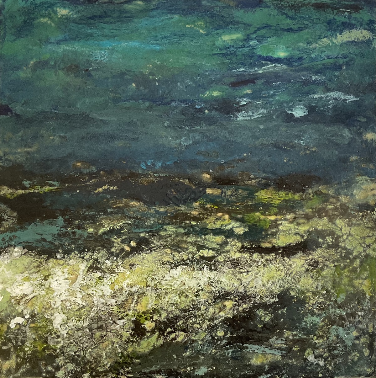 Σαράντα ζωγραφικά έργα δημιουργημένα από τη διεθνή εικαστικό Άννα Αχιλλέως Stäubli με εγκαυστική τεχνική ειδικά για τον χώρο του καφέ του Εθνικού Αρχαιολογικού Μουσείου, επιχειρούν να συλλαβίσουν και να νοηματοδοτήσουν συμβολικά και πλαστικά τη θάλασσα ως ομηρική λέξη. Ως κέλυφος και έμβιο παλίμψηστο μαγικό περιεχόμενο. Ως θριαμβική αρχέγονη πηγή ζωής, ως διάπλου πολιτισμού και επικοινωνίας. Να την κατανοήσουν και να την τραγουδήσουν ως Θάλασσα μικρή και ως ωκεανό, ως μύρα μαγική, ως πόρο και ως πόντο ανεξάντλητο, ως ζάλη και γαλήνη.
