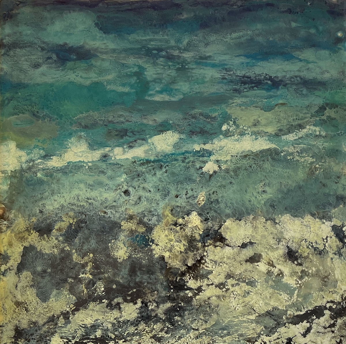 Εμπνευσμένη από τη θάλασσα, τη φύση, τα λουλούδια, τα μεταλλεία και τη βυζαντινή τέχνη, δημιουργεί έργα Εγκαυστικής τέχνης – μια αρχαία τεχνική με κερί μέλισσας και χρωστικές ουσίες, ακρυλικά και λάδι.