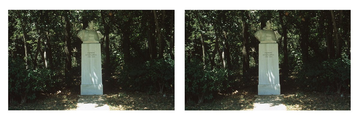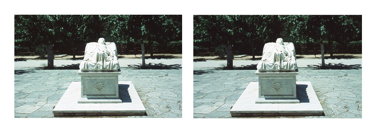 Ένας διπλός εγκιβωτισμός. Διατρέχοντας τον διάδρομο που οδηγεί στην Υπηρεσιακή Αυλή, στα σπλάχνα του Μεγάρου Μουσικής, ο θεατής ανακαλύπτει την εγκατάσταση τριών συμπαγών γλυπτικών διατάξεων που περιέχουν εντός τους μια ιδιάζουσα στερεοσκοπική θέαση του δημοσίου χώρου του Πεδίου του Άρεως, προσβάσιμη ατομικά –σχεδόν ενδόμυχα– από το βλέμμα καθενός θεατή.
