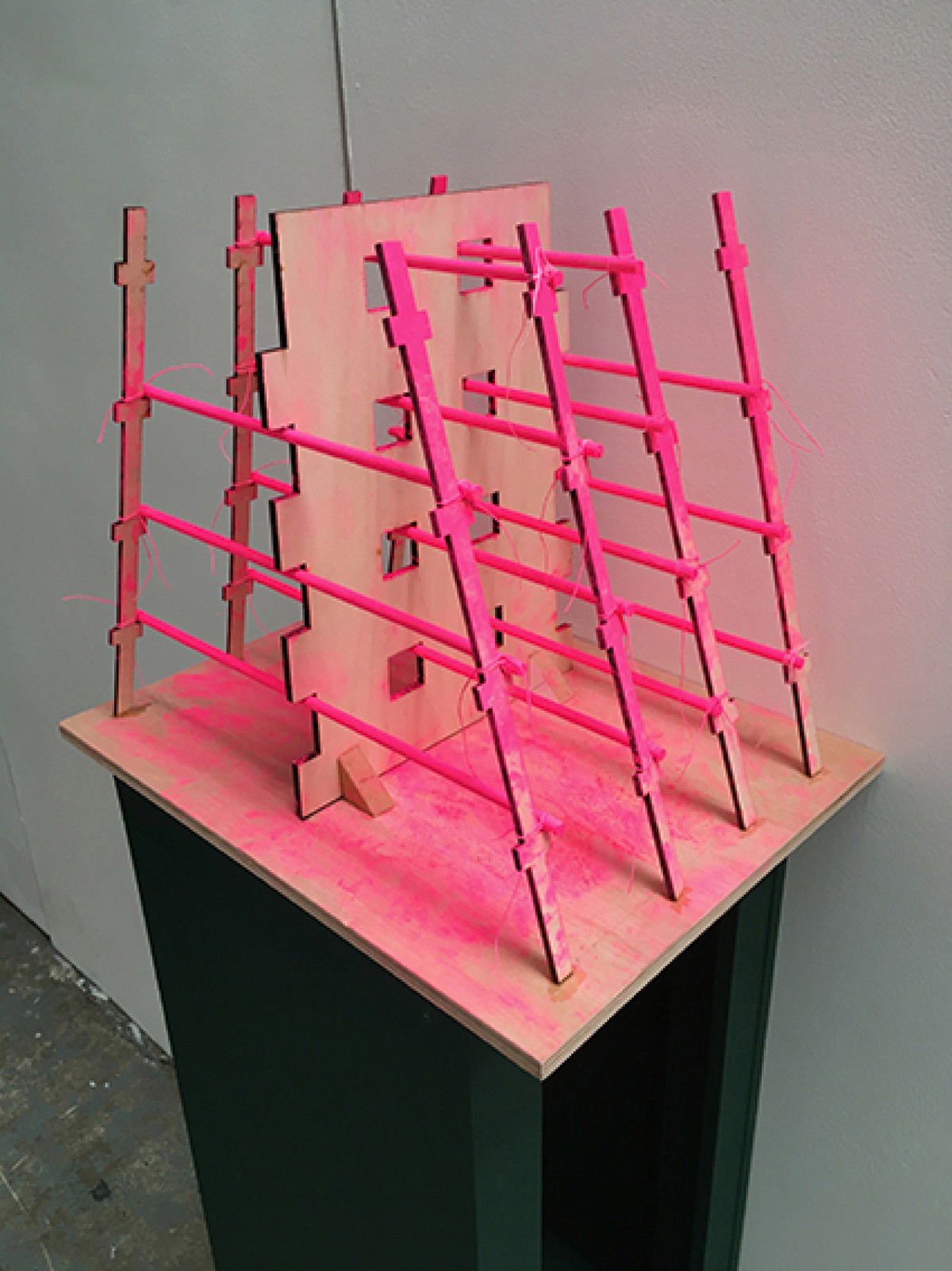 Δανεισμένος από ένα δοκίμιο της θεωρητικού τέχνης Andrea Phillips, ο τίτλος της έκθεσης («Prop-objects») αναφέρεται στις δομές στήριξης, κυριολεκτικές και μεταφορικές. Ένα αντιπροσωπευτικό prop-up είναι η σκαλωσιά, που μαγνητίζει το ενδιαφέρον της Πασίδη και κατέχει πρωταγωνιστικό ρόλο στην έκθεση, τόσο στις εγκαταστάσεις όσο και στις φωτογραφίες της. Εδώ η σκαλωσιά, που ως γνωστόν χρησιμοποιείται στην ανέγερση και συντήρηση οικοδομών και μνημείων (απαντάται επίσης καθημερινά σε πολλές και ποικίλες μορφές) λειτουργεί όπως το κάδρο σε έναν ζωγραφικό πίνακα, δηλαδή ως ένα «πάρεργον», κατά τον φιλόσοφο Jacques Derrida. Έχοντας μελετήσει στο διδακτορικό της την επιτελεστική διάσταση της γλυπτικής και τη σκηνική λειτουργία του έργου τέχνης, η Πασίδη ενδιαφέρεται για τις συναισθηματικές επιδράσεις (affects) που γεννά στους θεατές η συνάντηση με μια γλυπτική εγκατάσταση που υιοθετεί τα αντιμνημειακά χαρακτηριστικά της σκαλωσιάς. Για την καλλιτέχνιδα, ο χώρος της σύγχρονης γλυπτικής είναι διευρυμένος και περιλαμβάνει «την πολύτροπη τέχνη του πράττειν», τη «λαθρόβια ελευθερία των πρακτικών» (Michel de Certeau), όπως αυτή εκδηλώνεται, μεταξύ άλλων, στις ανυπόγραφες δημιουργίες των απανταχού bricoleurs.