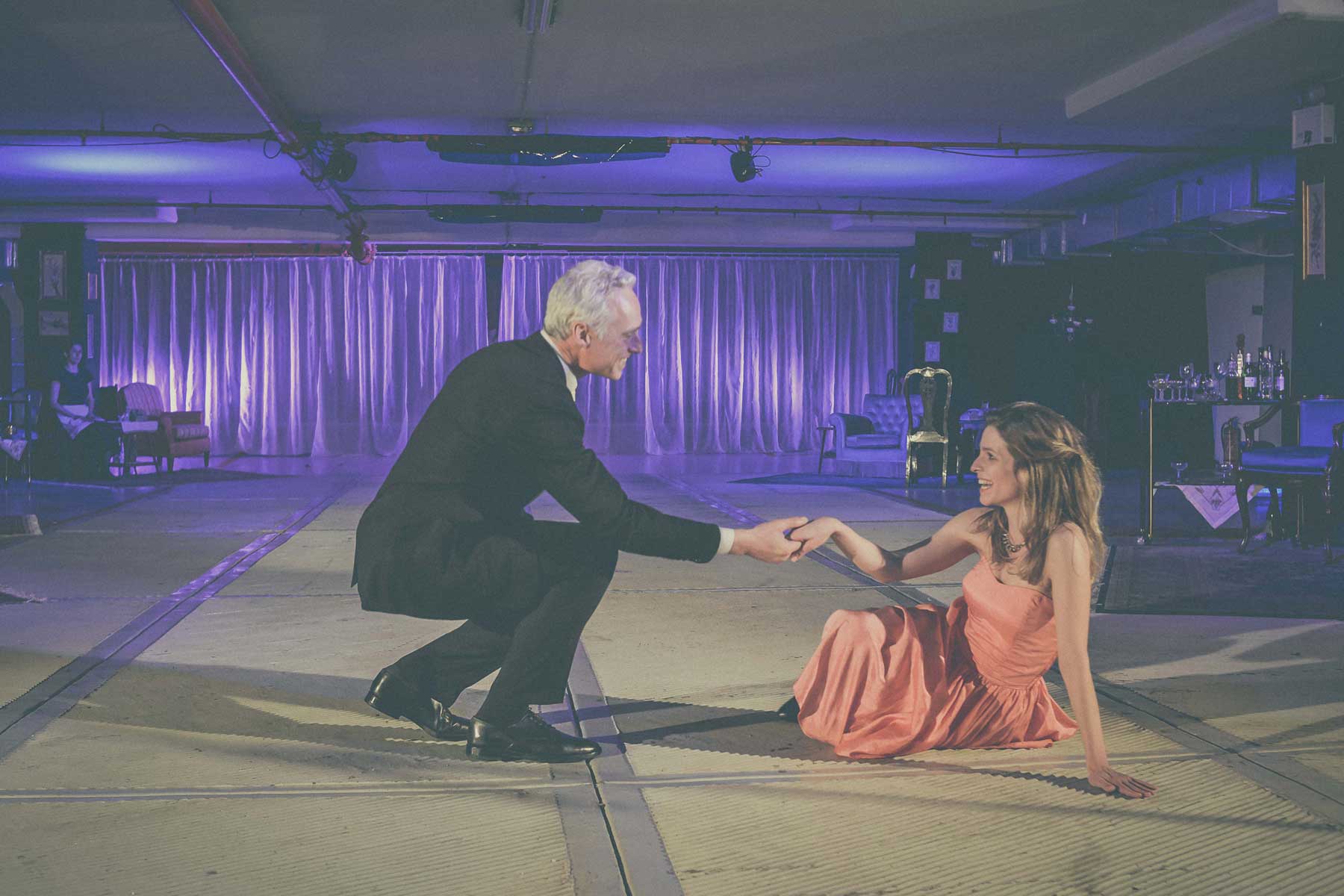 Το έργο παρουσιάζεται στο υπόγειο του ιδρύματος, ένα γκαράζ. Αυτό βοηθά πολύ την παράσταση διότι μοιάζει με κινηματογραφικό σετ. Έτσι ενώ βλέπεις θέατρο έχεις την αίσθηση ότι βλέπεις πλάνα από ταινία.