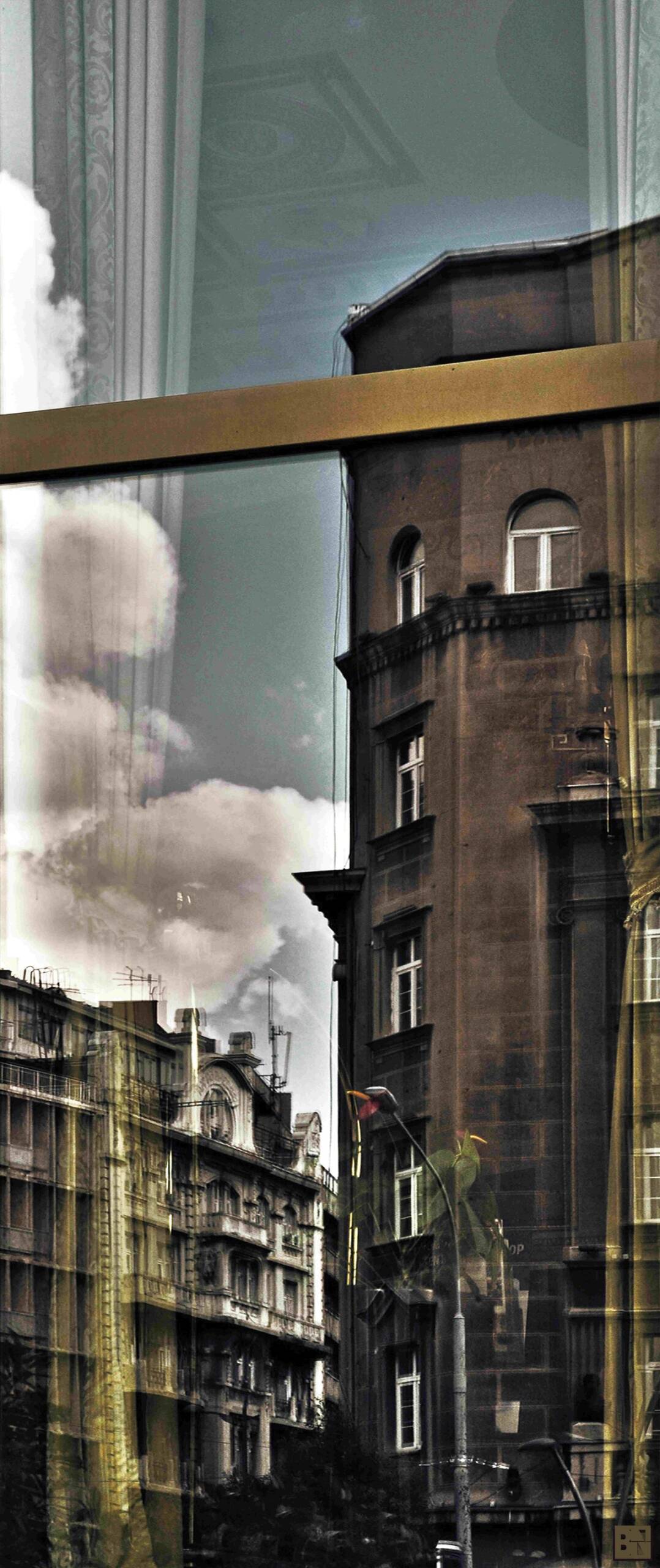 Γλυπτά από τσιμέντο, το αγαπημένο υλικό της αστικής υπερηφάνειας, αναθήματα που χαράσσουν το κάθε προσωπικό μονοπάτι, εσωκλείοντας τις μνήμες, τις σκέψεις και τα συναισθήματα που μας συνοδεύουν σε ένα μεγάλο ταξίδι, ήχοι που αποτυπώνουν την ανυπαρξία μας μπροστά στην ταχύτητα και την αναστάτωση της πόλης, ενδείξεις ερειπίων ανάμεσα στα γιγάντια αστικά οικοδομήματα. Κάθε παράθυρο και μία φερέλπιδα γωνία θέασης η οποία απελευθερώνει και ταυτόχρονα εγκλωβίζει τα μάτια του θεατή. Στο σημείο καμπής, στο λεπτό σύνορο ανάμεσα στον ιδιωτικό και τον δημόσιο χώρο, στο δικό μου και στου άλλου, ένα στιγμιαίο αδιέξοδο που αποτυπώνεται στην αντανάκλαση της επιλογής. Ο άνθρωπος με τη μεγαλεπήβολη παρουσία του στις μεγαλουπόλεις και η φύση με την υποβλητική απουσία της, υπό το σάουντρακ της αστικής μας μοναξιάς.