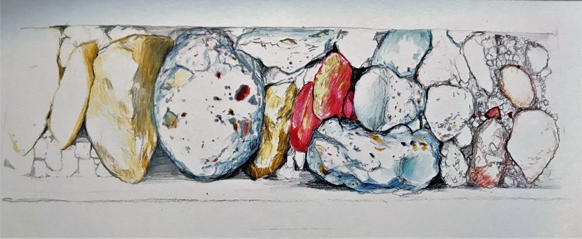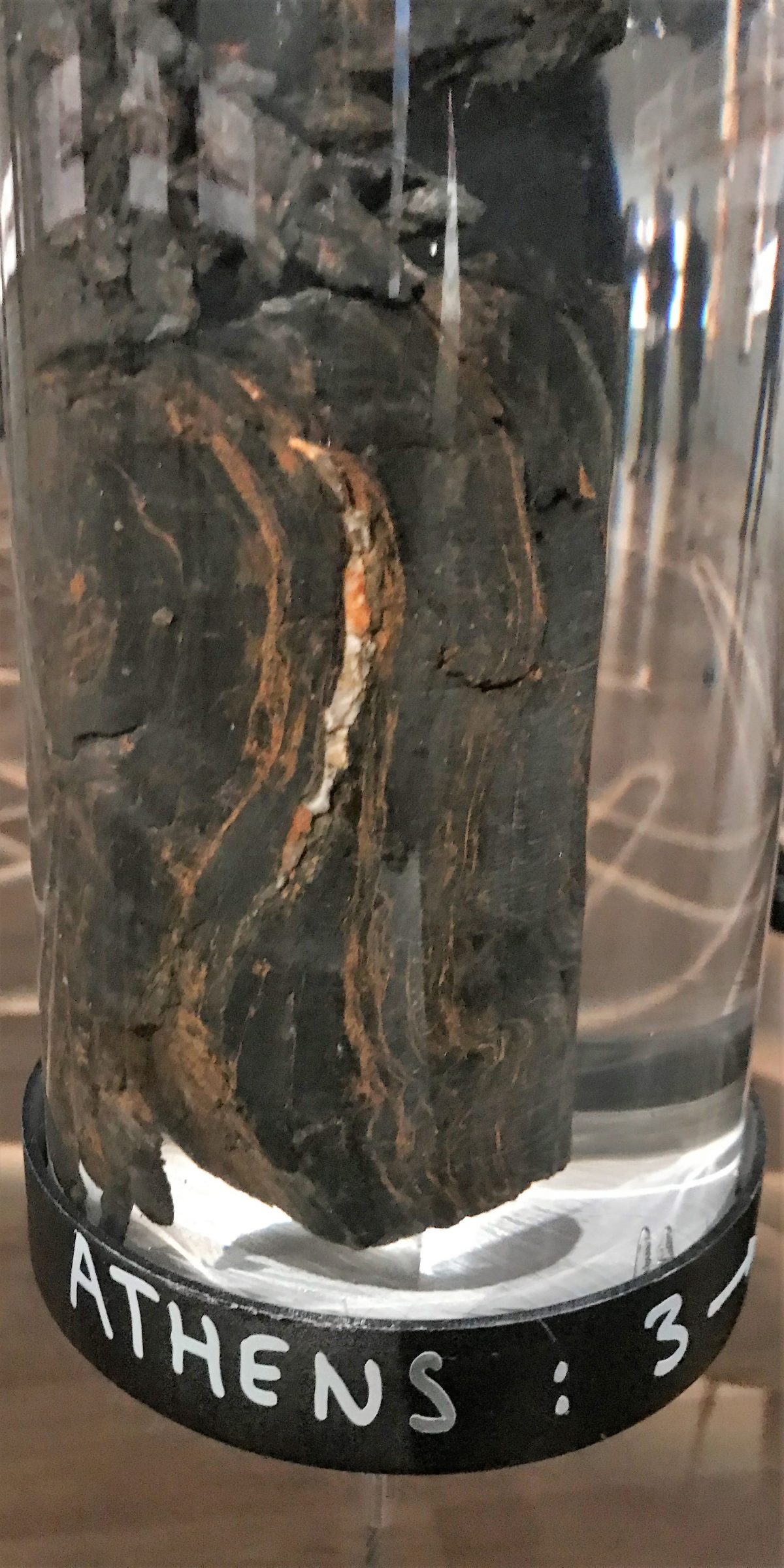 Η διαδικασία της συλλογής των πετρωμάτων από φορτισμένα πολιτικά και ιστορικά σημεία και η τοποθέτηση τους σε διάφανους πλεξιγκλάς ‘κίονες’, αφού έχει αφαιρεθεί ο αέρας και εμποτισμένους σε ειδική ρητίνη, δημιουργεί μία ‘κάθετη τομή’ στον τρόπο που διαβάζουμε την ιστορία, εντοπίζοντας τα κενά και τις ασυνέχειες των πολιτισμών και της εναλλαγής των πολιτικών πεποιθήσεων, των πτώσεων των ιδεολογιών, των απογοητεύσεων, των απομυθοποιήσεων, μα και της ρουτίνας της καθημερινότητας. Μία στήλη της Αθήνας, λόγου χάριν, από ένα ‘ένδοξο’ καλλιτεχνικά παρελθόν όπου συντρίφθηκαν κομμάτια αγγειοπλαστικής για να το αποδείξουν, τώρα πλέον εναρμονίζονται με κατάλοιπα προϊόντων τσιμεντοβιομηχανιών (ανεξέλεγκτη εικαστική ανάπτυξη) και κάθε λογής απορρίμματα.