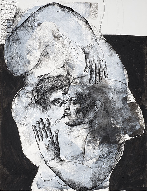 Κεντρική φωτογραφία άρθρου: Mela Eva, Refugees, 2016, mixed media on paper, 150x205cm (λεπτομέρεια)