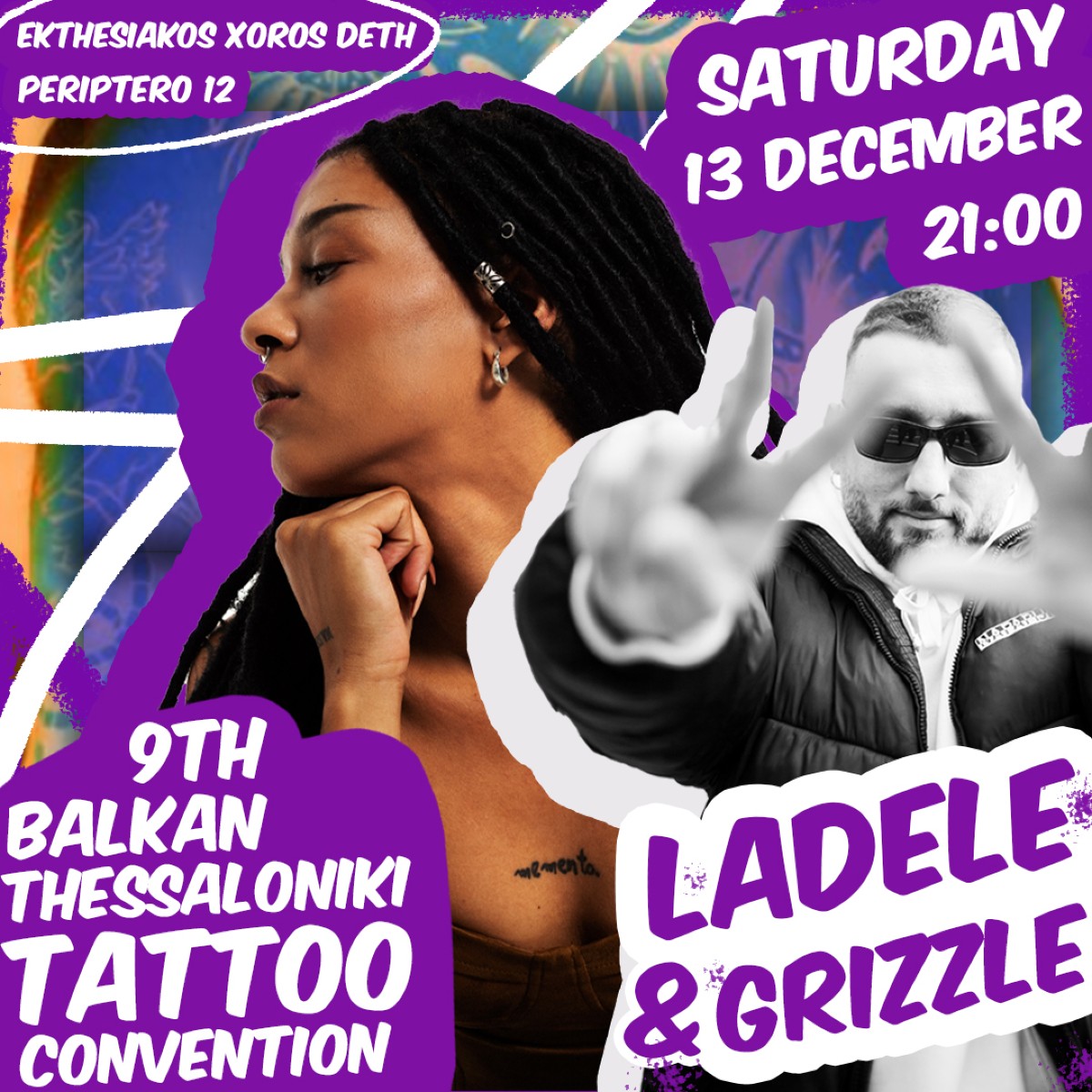 Φέτος, το 9ο Balkan Thessaloniki Tattoo Convention φέρνει μαζί του μια ακόμη πιο δυνατή, πιο ζωντανή και πιο urban πλευρά της Θεσσαλονίκης. Το Σάββατο 13 Δεκεμβρίου, στις 21:00, οι Ladele & Grizzle ανεβαίνουν στη σκηνή για ένα εκρηκτικό live που θα δώσει νέο παλμό στη διοργάνωση. Με τον χαρακτηριστικό ήχο και το attitude τους, μετατρέπουν τη ΔΕΘ σε ένα urban stage που ενώνει tattoo lovers, μουσικόφιλους και όλους όσοι αγαπούν τη σύγχρονη street κουλτούρα.