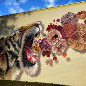 Μια τίγρης που απελευθερώνει λουλούδια και πολύτιμα πετράδια γίνεται τοιχογραφία