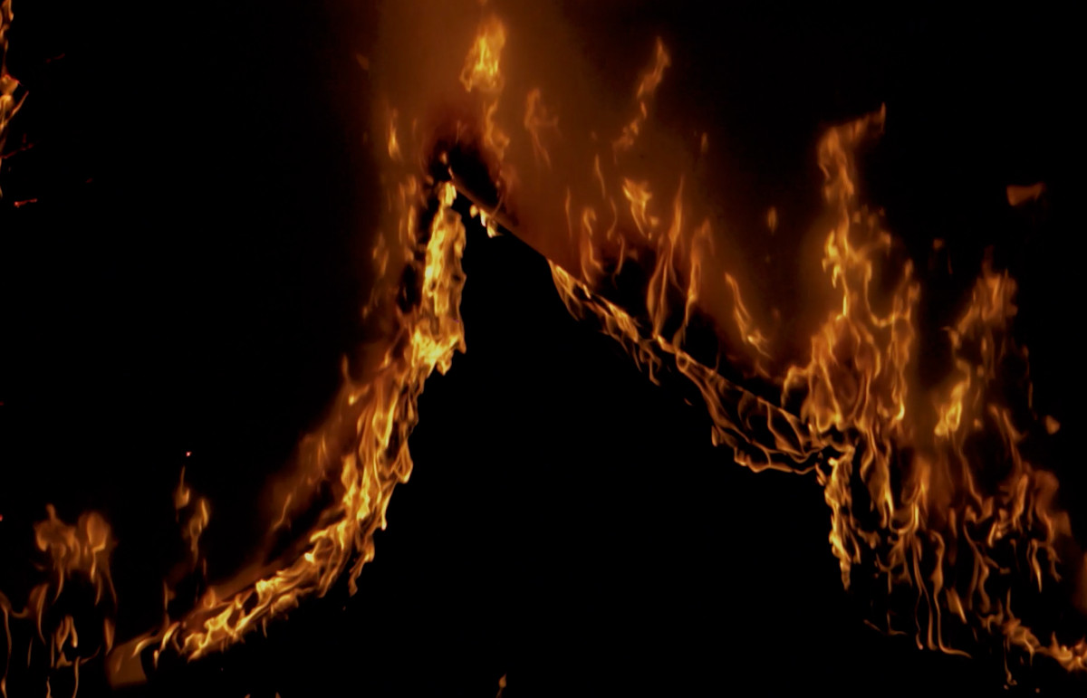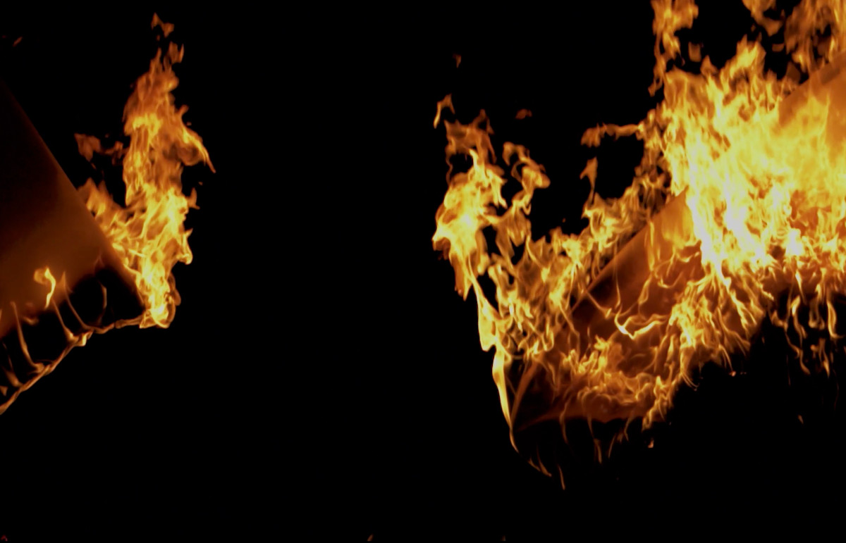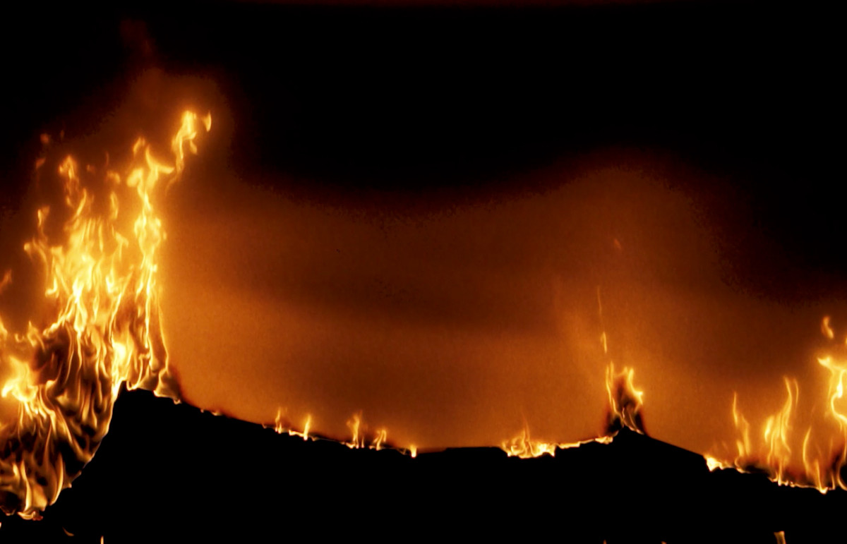 Τα δύο βασικά στοιχεία που χρησιμοποιούνται αντιπαραθετικά στην έκθεση της Δανάης Στράτου είναι η αναπαράσταση ενός υγιούς δάσους, στη μία εγκατάσταση, και η βιντεοσκοπημένη εικόνα ενός φύλλου χαρτιού που φλέγεται ασταμάτητα με πολύ αργό ρυθμό, στην άλλη.