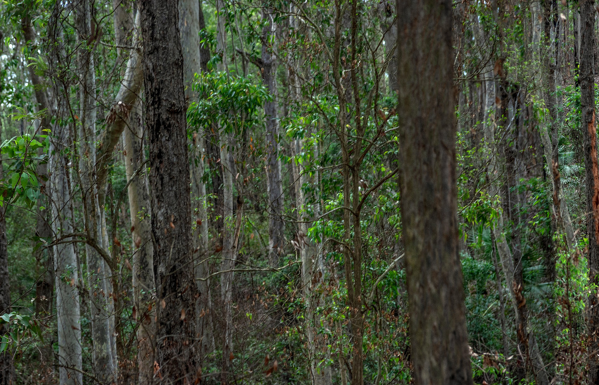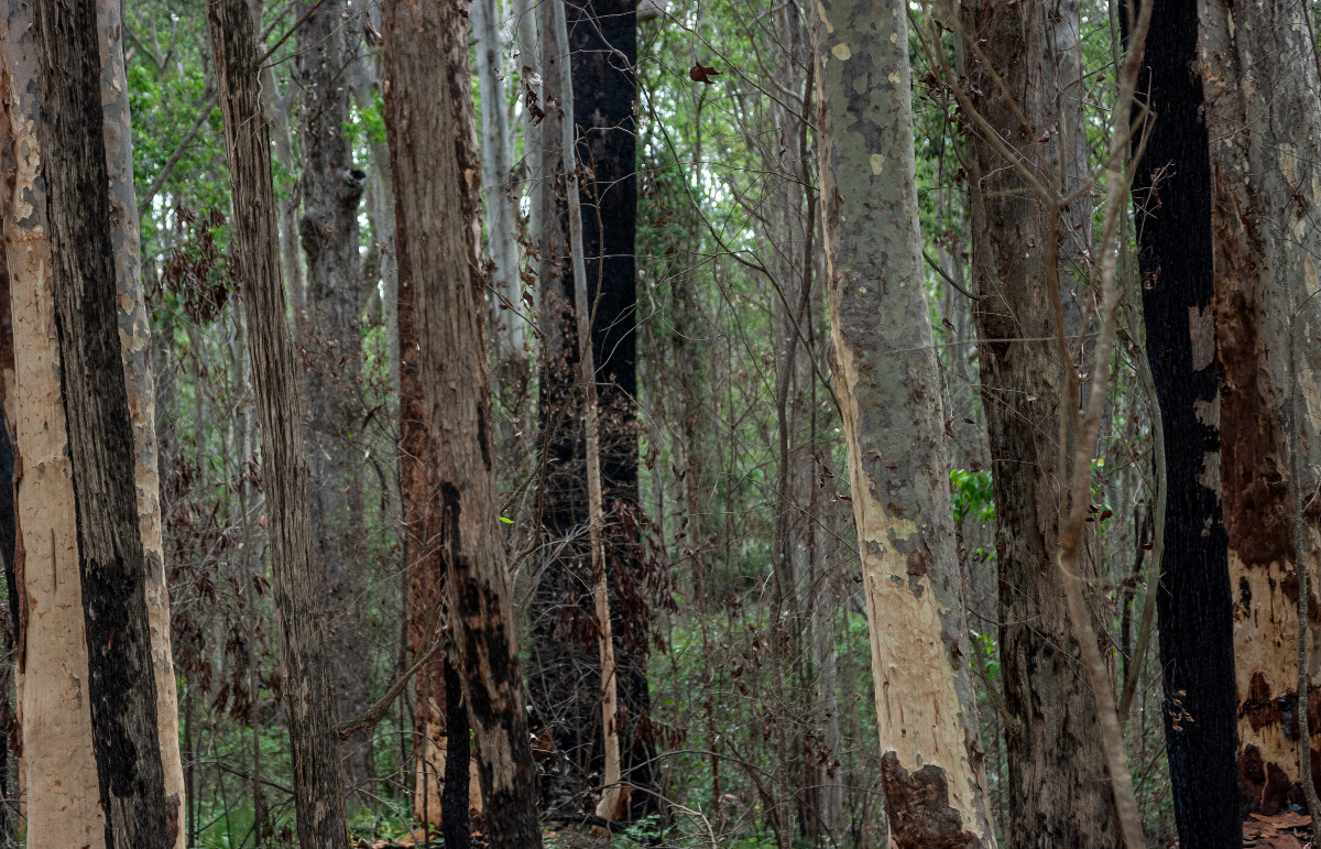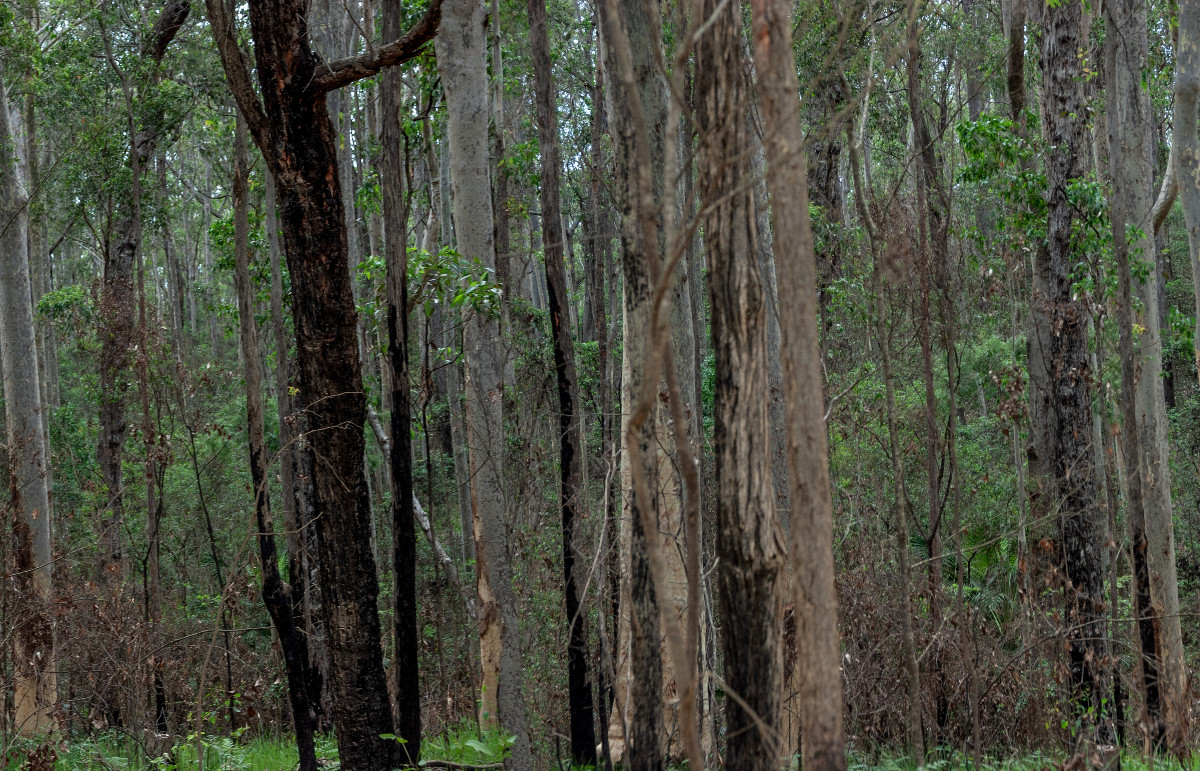 Τα δάση της Αυστραλίας φέρουν συμβολισμούς που σχετίζονται με τις αντιφάσεις της σύγχρονης ανθρώπινης κοινωνίας. Το δάσος Merimbula είναι μια παράκτια περιοχή στη νοτιοανατολική Νέα Νότια Ουαλία που το 2019 καταστράφηκε από άνευ προηγουμένου δασικές πυρκαγιές, πυροδοτώντας έτσι μια έντονη συζήτηση για την κλιματική αλλαγή μεταξύ των κοινοτήτων που μέχρι τότε την αρνούνταν. Οι φωτογραφίες που εμφανίζονται στην εγκατάσταση τραβήχτηκαν από την καλλιτέχνιδα το 2010, μαζί με ηχογραφήσεις πουλιών που ανήκουν στο αυστραλιανό είδος καρακάξας (bell magpie) και τα οποία έχουν πλέον σιωπήσει.