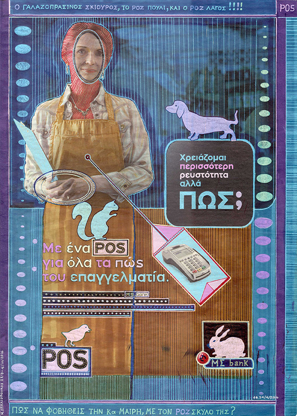 «…Αυτή την ατέρμονη έκρηξη των εικονο-φράσεων «ευαγγελίζεται» ο Μάριος Σπηλιόπουλος. Με αφετηρία την εμπειρία του νταζιμπάο, και την επιλογή ορισμένων φύλλων από τον ελληνικό και διεθνή τύπο ως υπόστρωμα, δημιουργεί 114 νέα φύλλα, ένα είδος προσωπικού ημερολογίου, όπου η εικόνα-τεχνούργημα αναδύεται χάρη στο μοντάζ παραθεμάτων παρελθόντων χρόνων και στην πληθυντική ανάκρουση φράσεων και εικόνων. Ένας ποιητικός σκωπτικός μηχανισμός τίθεται προς χειρωνακτική χρήση, διαμέσου παραποιήσεων, διαγραφών, παρεκτροπών, υπονομεύσεων, αναστροφών, χρωματικών διαστίξεων, υπερθέσεων… Εν κατακλείδι, το μεθοδικά σκωπτικό, ζωγρα-φωτο-γραφικό μοντάζ του Μάριου Σπηλιόπουλου, ανατέμνει την περίοδο της πρόσφατης «κρίσης», επιχειρώντας όχι να κατανοήσει τα γεγονότα με άλλο τρόπο, αλλά να κάνει τομές εικονικών ενεργημάτων, τα οποία συνιστούν μια «πολιτική εικονολογική» παρέμβαση στο πεδίο της μνήμης, της σύγκρουσης, της απόρριψης…».