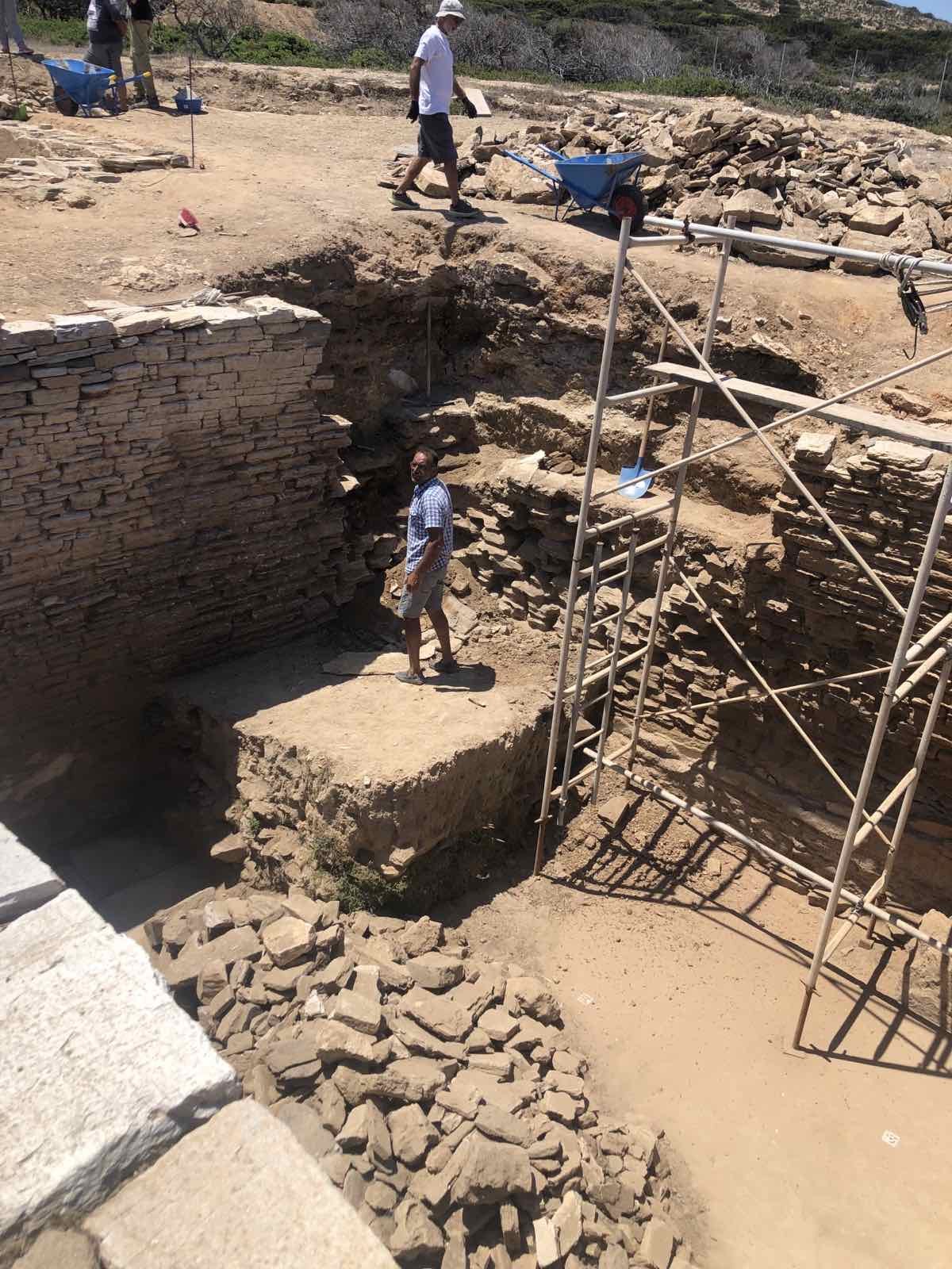 Τα σημαντικότερα ευρήματα της φετινής ανασκαφικής περιόδου προέκυψαν από τη συνέχιση της διερεύνησης της μεγάλης αρχαϊκής κατασκευής που είχε εντοπισθεί το 2019 όχι πολύ μακριά από το λιμάνι (συμβατικά Κτίριο Ω). Ορίζεται από δύο τοίχους (Τ1 και Τ3). Πιθανότατα η κατασκευή είχε οχυρωματικό χαρακτήρα- ενδεχομένως κάποιο πρόπυλο με περίβολο.