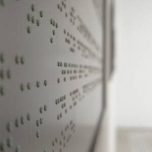 Το εικαστικό έργο που φέρει τον τίτλο “braille” πρόκειται για μια πρωτότυπη εγκατάσταση – installation χώρου, η οποία δημιουργήθηκε από συνεντεύξεις που έλαβε ο καλλιτέχνης από τρία άτομα με διαφορετικό επίπεδο όρασης. Το περιεχόμενο των συνεντεύξεων αφορά στον τρόπο με τον οποίο τα τρία αυτά άτομα αντιλαμβάνονται τα χρώματα. Το πρώτο άτομο είναι μια γυναίκα 53 ετών με μειωμένη όραση, το δεύτερο ένας νέος άνδρας 25 ετών που αναγνωρίζει μόνο τονικά το φως και τη σκιά, ενώ το τρίτο άτομο είναι έφηβος 15 ετών και είναι εκ γενετής τυφλός, συνεπώς δεν είδε ποτέ του τα χρώματα. Οι απαντήσεις των ανθρώπων ποικίλλουν, αφού άλλο άτομο θυμάται πως έβλεπε, άλλο πως βλέπει, και άλλο μιλάει για το πως φαντάζεται τα χρώματα.