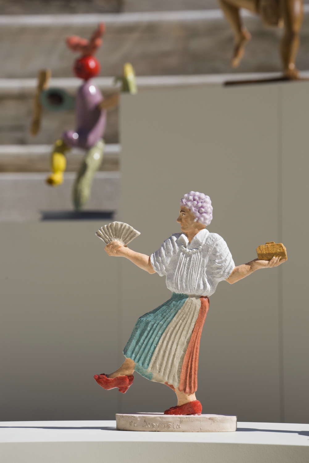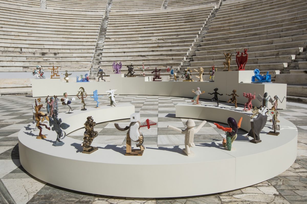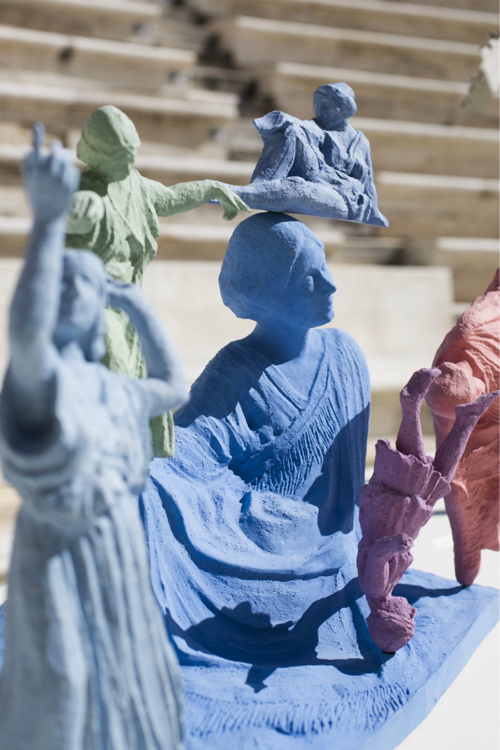 Η επιμελήτρια της έκθεσης και ιστορικός τέχνης Πολύνα Κοσμαδάκη αναφέρει, «Με έναυσμα την εγκατάσταση στον χώρο του Ωδείου, η γλυπτική διαδικασία, σπουδή και τελετουργία, χορός και παιχνίδι, μετατρέπεται σε ‘γλυπτική παράσταση’. Στη σκηνή του Ηρωδείου γίνεται δυνατή όχι μόνο η οπτική σχέση με το έργο από διάφορα σημεία θέασης εξ αποστάσεως, αλλά και η συμμετοχή σε αυτό μέσα από την παρουσία του κοινού στη σκηνή, ανάμεσα στα έργα. Ταυτόχρονα, ο διάλογος του κλασικού μνημείου και των χιουμοριστικών γλυπτών αξιοποιεί την ένταση των αντιθέσεων αλλά και των συναντήσεων ανάμεσα στα αρχαία ερείπια και τα σύγχρονα θραύσματα».