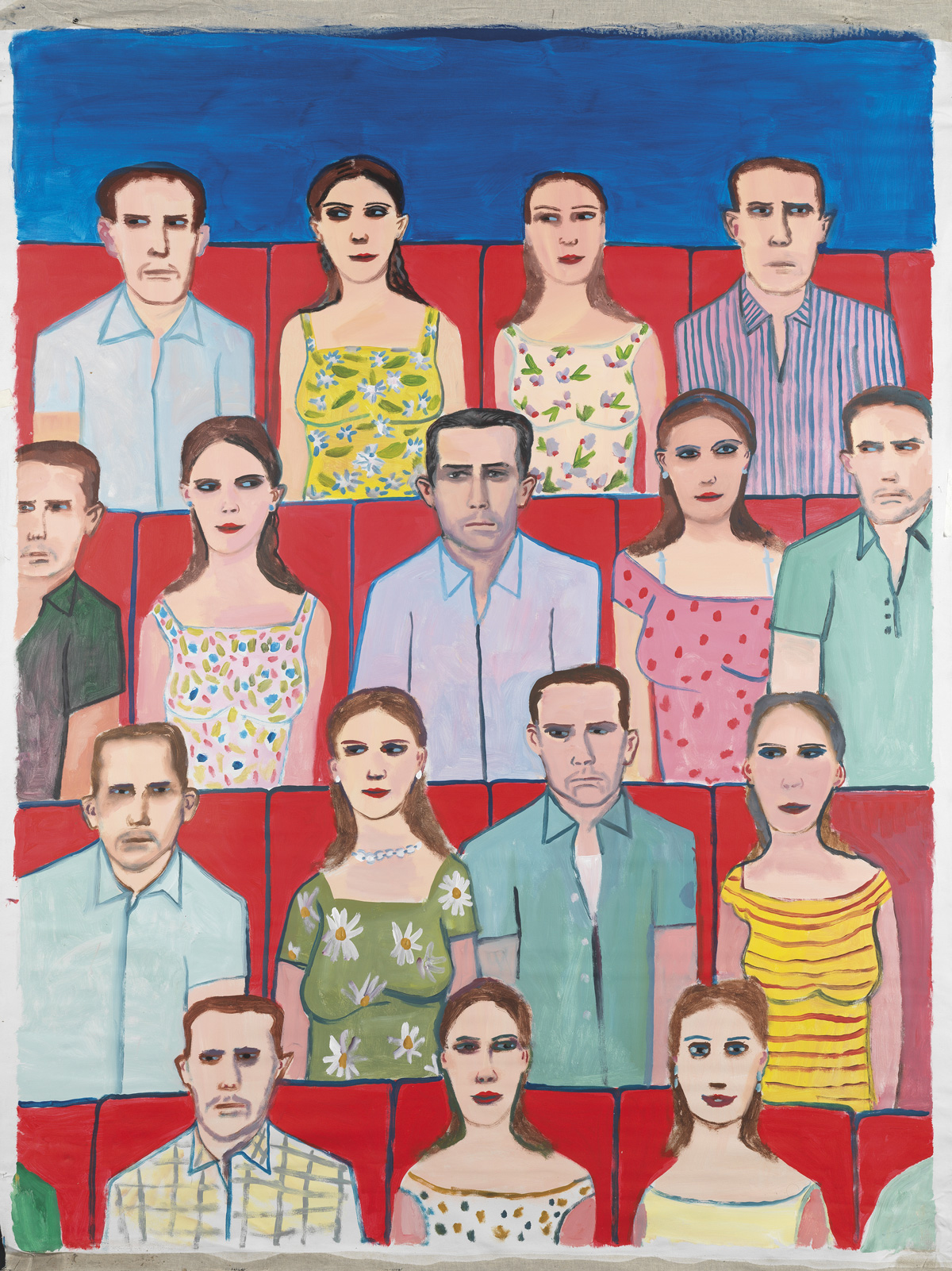Κεντρική φωτογραφία θέματος: Λεπτομέρεια του έργου Εδουάρδος Σακαγιάν, «Θεατές, κοινό, άσπρος καβαλάρης, όχλος και κοπάδι», 1000×150 εκ., βινυλικά σε πανί