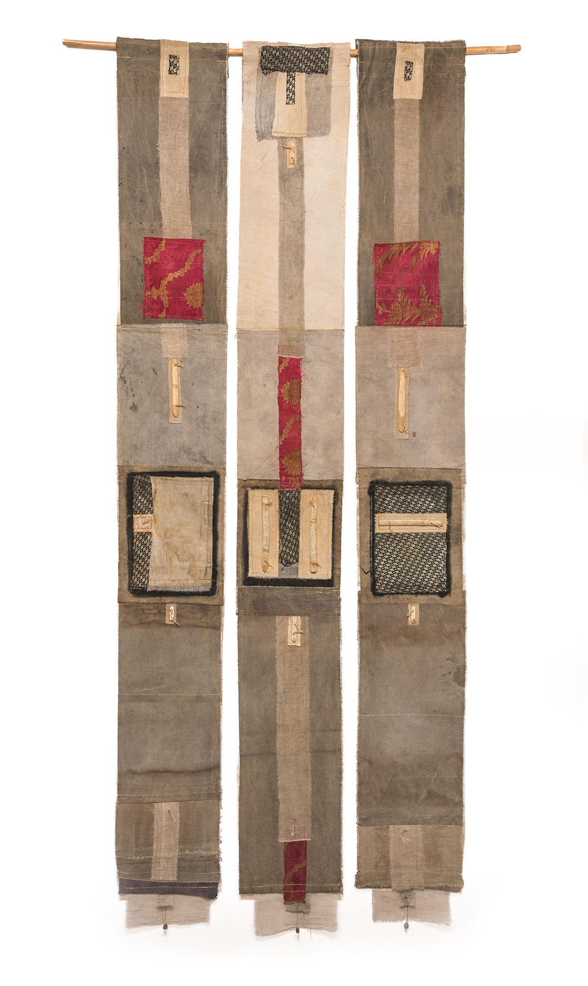 Παράλληλα, στον ίδιο γεωγραφικό χώρο και κυρίως στις χώρες της Νότιας Μεσογείου η γραφή θεωρείται ότι έχει μαγική δύναμη και προστατευτικές ιδιότητες. Το καλάμι ένα από τα αρχαιότερα εργαλεία γραφής είναι σε ισχύ ακόμα και σήμερα για την αραβική καλλιγραφία. Τα δεμένα πάνω στο ύφασμα “γραμμένα” καλάμια, γίνονται ένα είδος φυλαχτού. Έτσι το χρωματισμένο με τις φυτικές βαφές με τις προστατευτικές ιδιότητες το πανί με τα “γραμμένα” καλάμια μετατρέπεται σε ένα είδος προστατευτικής ασπίδας που κρατάει μακριά κάθε είδους κακές προθέσεις. Τα μεγάλων διαστάσεων αυτά έργα αιωρούνται στον χώρο αναδεύοντας πρωτόγονους φόβους και αγωνίες της συλλογικής μνήμης που καλούνται να κατευνάσουν.