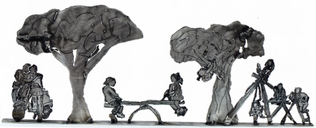 Γλυπτά από ανοξείδωτο χάλυβα, άνθρωποι από ατσάλι καθισμένοι χαλαρά ή παρέες στο καφενείο , παιδιά σε παιδική χαρά , δέντρα που στη σκιά τους σκυλάκια βγαίνουν βόλτα και μαζί άνθρωποι που αφήνουν την ανθρώπινη πνοή, το αποτύπωμα τους στο σκληρό αδιαπέραστο υλικό που χρησιμοποιεί η καλλιτέχνης για να τα αποδώσει γλυπτικά. Δεν γίνεται να μη μας φέρουν στο νου σπουδαίους καλλιτέχνες του Μοντερνισμού (όπως ο Πικάσσο ) που με τη γλυπτική τους ανέδειξαν τις απλές καθημερινές σκηνές της ζωής με πρωταγωνιστή τον άνθρωπο ή τα ζώα.
