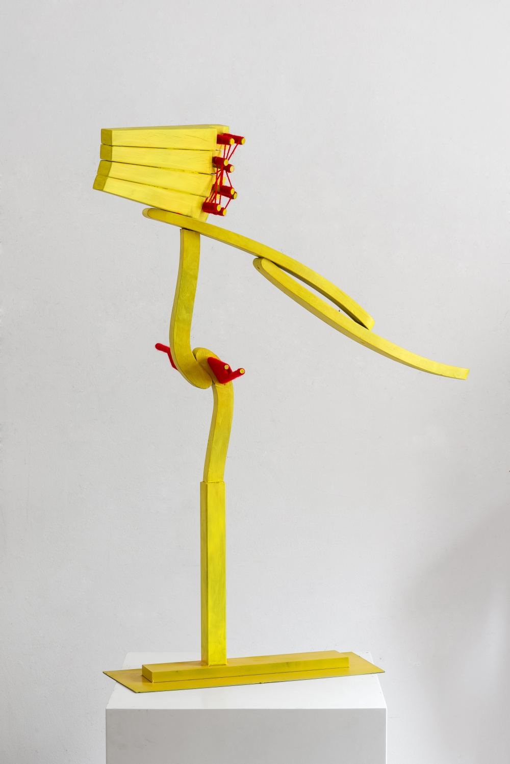 Χρησιμοποιώντας το ξύλο, το χρώμα, το μάρμαρο και τον σίδηρο ιχνηλατεί και επαναπροσδιορίζει τις έννοιες που τον απασχολούν, να μεταδώσει μηνύματα και απόψεις που τον ώθησαν και τον ωθούν να αφουγκράζεται τον κόσμο.