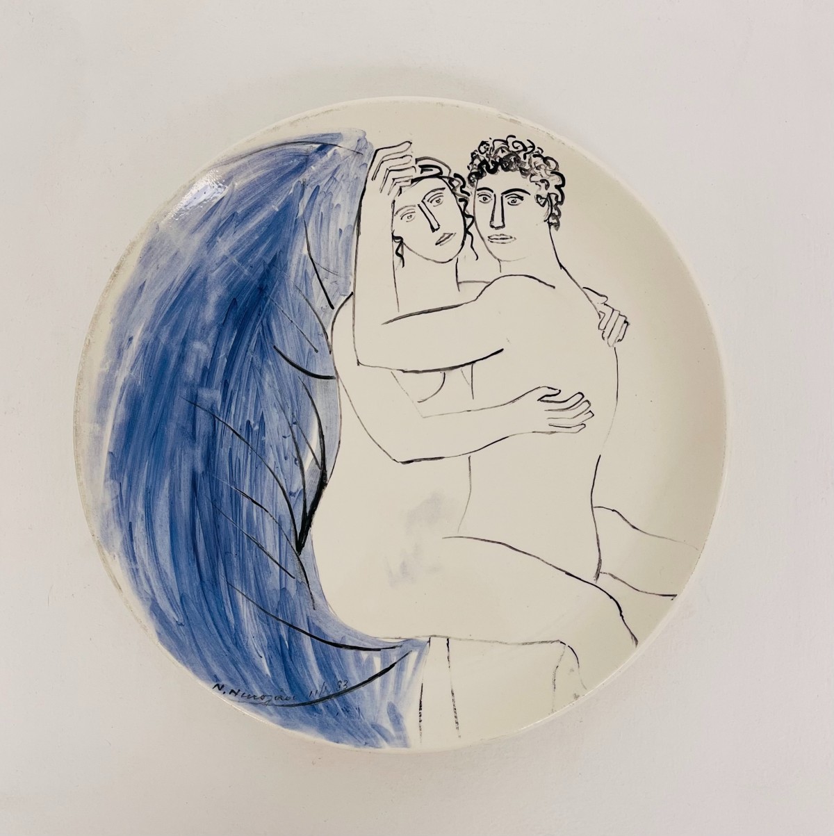 Μια ντουζίνα ακόσμητα πιάτα λοιπόν που βρέθηκαν αποθηκευμένα στο εργαστήρι του Νικολάου στην Αίγινα, έγιναν κι η αφορμή γι’ αυτή την έκθεση. Είκοσι τρία κεραμικά πιάτα που διατέθηκαν σε ισάριθμους σύγχρονους εικαστικούς καλλιτέχνες για να αφήσουν πάνω στη κεραμική τους επιφάνεια τη δική τους αισθαντική γραφή. Σχέδια, χρώματα, ανάγλυφα, που ιστορούν ιδιωματικές προσεγγίσεις μιας οικείας όσο κι ανοίκειας επιφάνειας. Γιατί η καλλιτεχνική γραφή είναι αυτή που διανοίγει τα αντικείμενα που μας περιβάλλουν στον ορίζοντα μιας άλλης σκηνής. Δεν είναι πια η πραγματικότητα της χρηστικότητάς τους, αλλά η έξαρσή τους στον τόπο και στο χρόνο μιας άλλης απόλαυσης. Ακόμη κι όταν αυτή η γραφή εκδηλώνεται ως μια απλή διακόσμηση πάνω στ’ αντικείμενο, και τότε ακόμη, το βλέμμα ανακτά τον απολεσμένο του ορίζοντα, τη διεσταλμένη, αλλά και διεστραμμένη, ορατότητά του. Τα πράγματα τότε δεν είναι αντικείμενα μιας χρειώδους ανάγκης, αλλά παραμυθιακά τρόπαια και φαντασιακές διαφυγές.
