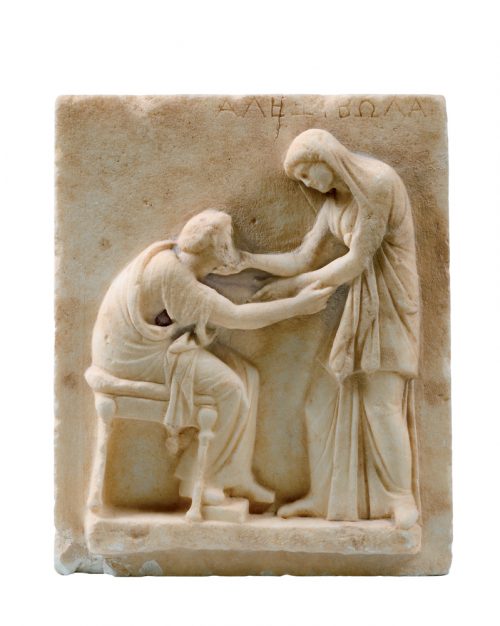 Δεν έχουν, όμως, μόνο οι επιφανείς «ήρωες» της αρχαίας μυθολογίας ιστορίες συναισθημάτων να «διηγηθούν». Έχουν και οι «κοινοί θνητοί», όπως ο ιδιοκτήτης ενός χοίρου, ο οποίος θρηνεί το χαμό του αγαπημένου του ζώου, καθώς αυτό βρήκε τραγικό τέλος κάτω από τις ρόδες της άμαξας του κυρίου του. Μια επιτύμβια στήλη, που απεικονίζει την τετράτροχη άμαξα να παρασύρει το χοίρο, είναι ο φόρος τιμής που αποτίνει ο θλιμμένος άνδρας στο αδικοχαμένο ζώο.