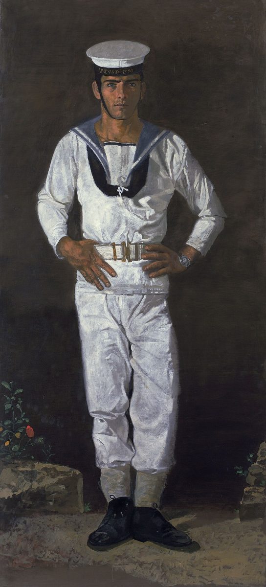 Κεντρική φωτογραφία θέματος: Ο Ναύτης που διαβάζει, 1981, Λάδι σε χαρτί kraft, 93,0 Χ 80,0, Ίδρυμα Γιάννη Τσαρούχη, αρ. ευρ. 1596