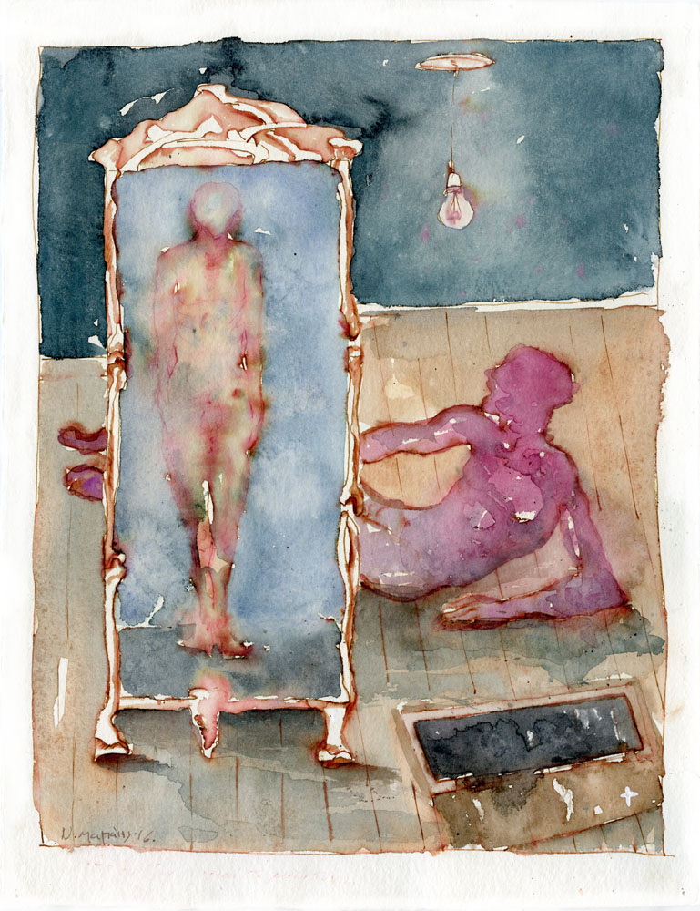 Στις πυκνές του ακουαρέλες ο καλλιτέχνης εκφράζεται σίγουρα, χωρίς να καταργεί τίποτε, ούτε απ’ την ρευστότητα του υλικού του, ούτε από το απρόοπτο και το ποιητικό στοιχείο που συνυπάρχουν στα έργα του. Διηγείται το σκοτεινό του παραμύθι με δυνατή ζωγραφική αίσθηση διατυπώνοντας τις μορφές του λες και θέλει να τις ξορκίσει από το δράμα τους. Η διατήρηση του περιγράμματος της φιγούρας είναι φανερό πως έχει νατουραλιστική καταγωγή. Ωστόσο εμπεριέχεται μέσα στο φόντο του έργου, που παύει να είναι ουδέτερο στοιχείο και γίνεται οργανικό μέρος του πίνακα καταλαμβάνοντας το βάρος που έχει η φιγούρα που περιβάλλει.