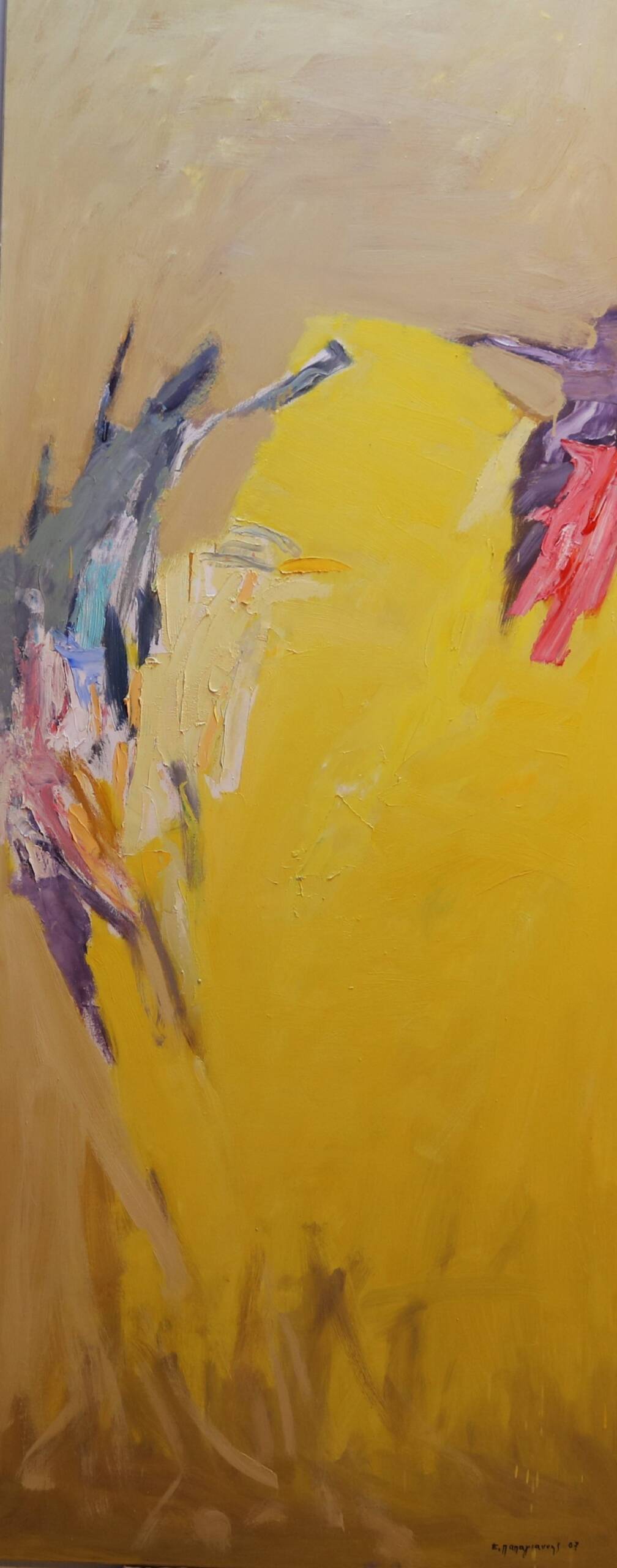 Η ιστορικός τέχνης Λουίζα Καραπιδάκη σημειώνει στον κατάλογο: «Αφηρημένες συνθέσεις με έκδηλα ανατρεπτικές εικονογραφίες, σε σχέση με τις οπτικές μας συνήθειες, παρουσιάζει ο Ευάγγελος Παπαγιάννης. Πρόκειται για μια ενότητα έργων με την αισθητική της πλήρους αφαίρεσης, όπου η δυναμική της χειρονομιακής πινελιάς του μορφοποιεί καθοριστικά τις ζωγραφικές επιφάνειες και παραπέμπει έντονα στις σχηματοποιήσεις της ζωγραφικής δράσης (action painting).