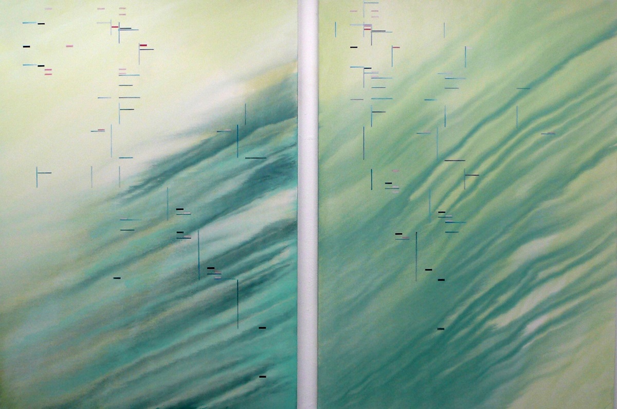 Έργα μεγάλων κυρίως διαστάσεων, επιβάλλονται, όχι με την ένταση της γραφής τους καθώς είναι άκρως μινιμαλιστικά ιμπρεσιονιστικά σαν γραφή, όσο με την ησυχία, την ηρεμία και την ατμοσφαιρικότητα που αποπνέουν. Οι φόρμες ρέουσες, οι τονικότητες επίσης, σε κάποια έργα διακόπτεται μόνο η αέναη ροή τους από κάποιες απειροελάχιστες λεπτές γραμμούλες σαν σημεία στίξης του χώρου – τόπου – χρόνου.