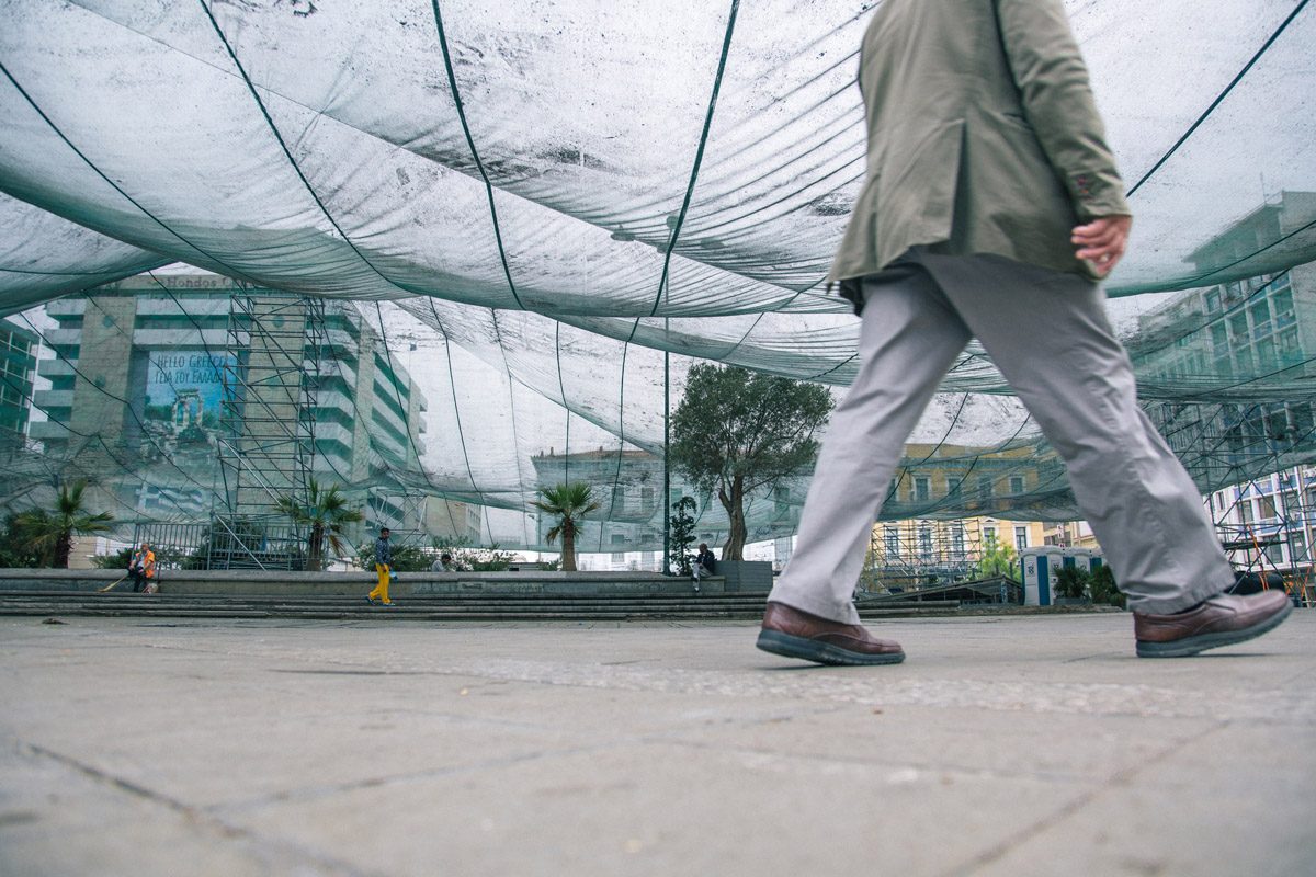 Αξιοποιώντας την τεχνική του καμουφλάζ, μεταμορφώνει την Ομόνοια σε καταφύγιο και ουδέτερη ζώνη, αόρατη από κάθε εισβολέα και από το άγρυπνο μάτι του Google maps.