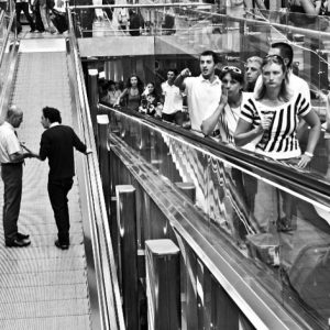 Νίκη Γουζούαση: Η φωτογραφία είναι ένα φίλτρο που τοποθετεί ο καλλιτέχνης ανάμεσα στον εαυτό του και στον κόσμο και παράλληλα ανάμεσα στον εαυτό του και στη φωτογραφία. Το φίλτρο όμως αυτό δεν είναι παρά ο ίδιος ο καλλιτέχνης και το αποτέλεσμα δεν μπορεί παρά να είναι η εικόνα της δικής του σχέσης τόσο με το περιβάλλον του όσο και με το μέσον που χρησιμοποιεί για να το προσεγγίσει. Επειδή όμως η διεργασία αυτού του φιλτραρίσματος είναι διαρκής, εναλλασσόμενη, απρόβλεπτη και συχνά αντιφατική, δεν είναι σύνηθες να προκύπτει μια εικόνα απόλυτη και σαφής. Η φωτογραφική δουλειά όμως της Νίκης Γουζούαση εκπλήσσει με την σφριγηλή παρουσία της και το ξεκάθαρο αποτέλεσμα που προσφέρει. Και οτιδήποτε τόσο πειστικό και δυναμικό στην τέχνη προκαλεί τον σεβασμό, αν όχι τον θαυμασμό. Η δυναμική υπογράμμιση της φόρμας στη φωτογραφία είναι γνωστό ότι συνιστά μια ολισθηρή επιλογή. Αλλά και η παρουσία ανθρώπων που κινούνται μέσα στο πλαίσιο αυτής της φόρμας παραπέμπει σε ανιαρά και τετριμμένα στερεότυπα. Εντούτοις, ο φωτογραφημένος κόσμος της Νίκης Γουζούαση παρουσιάζει μια εντυπωσιακή συνεκτικότητα, στο πλαίσιο της οποίας οι φόρμες αγκαλιάζουν κτίρια, ανθρώπους και σκιές σε μια χορογραφία που υπερβαίνει τα εικονιζόμενα. Και αξίζει να σημειωθεί ότι η συνεκτικότητα αυτή δεν κλονίζεται από τις πρώτες απόπειρες της φωτογράφου στην περιοχή του χρώματος, το οποίο δεν φαίνεται να την ξεστρατίζει από τις γοητευτικές εμμονές της. Τελικά η επιτυχία του αποτελέσματος συνίσταται στο γεγονός ότι το προσωπικό φίλτρο που χρησιμοποιεί η φωτογράφος αποδίδει ταυτόχρονα, αδιαίρετα και χωρίς δυνατότητα διάκρισης το όραμά της για τη φωτογραφία και το βλέμμα της πάνω στον κόσμο.