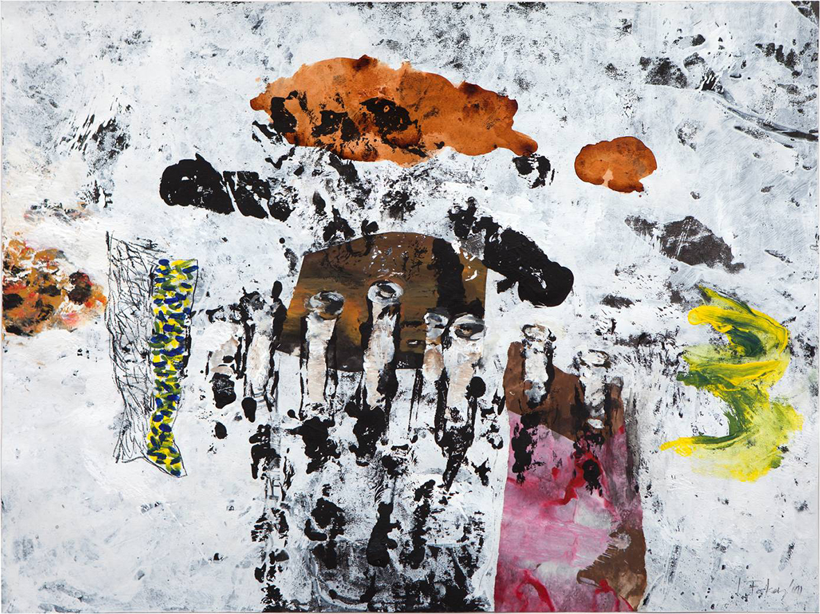 Η ζωγραφική του Φωκά δεν είναι τόσο αφηρημένη όσο δείχνει. Παρότι συγκαταλέγεται στους αφαιρετικούς ζωγράφους, δεν έκοψε ποτέ τους δεσμούς με την πραγματικότητα. Τα έργα που φτιάχνει τη δεκαετία του ’80 μεταφέρουν την αίσθηση των τοίχων, τα ίχνη των γκραφίτι, αυτό που συμβαίνει στην πόλη. Είναι η εποχή που ο ζωγράφος ζει σχεδόν μόνιμα στο Παρίσι και φωτογραφίζει ανελλιπώς τους αφηγηματικούς τοίχους της Πόλης του Φωτός. Κολλημένα χαρτιά, κολλάζ, γάζες, σπρέι, γραφές, σχισίματα, γδαρσίματα, ύλες που κολλάει και μετά ξεκολλάει, συνθέτουν τη φυσιογνωμία αυτών των χειρονομιακών έργων. Είναι η εποχή που δουλεύει πολύ με τα χέρια, ζωγραφίζοντας με τα δάχτυλα, πλάθοντας στον μουσαμά μικρές εκρήξεις. Ο πίνακας, συνήθως μεγάλων διαστάσεων, δεν έχει μια καθορισμένη θέση ή φορά: άλλοτε τον βάζει κάθετα κι άλλοτε οριζόντια, παίζοντας έτσι με τη γωνία θέασης. Αλλά το βασικό γνώρισμα αυτής της ζωγραφικής είναι η πολλαπλότητά της, το γεγονός ότι μέσα σε έναν πίνακα υπάρχουν πολλοί άλλοι. Αυτή η ιδιότητα -πολλοί πίνακες σε έναν- σου αποκαλύπτεται όταν απομονώσεις με το μάτι ή με την κάμερα λεπτομέρειες έργων του. Γενικά, ο ζωγράφος παίζει άλλοτε με το γήινο και άλλοτε με το ουράνιο, ενίοτε συνδυάζοντας και τα δύο. Το βέβαιο είναι πως ο άγριος εξπρεσιονισμός των έργων του της δεκαετίας του 1980 με την πάροδο των χρόνων εξημερώθηκε, έγινε πιο ήπιος, πιο στοχαστικός. Αλλά ο απώτερος στόχος του καλλιτέχνη παρέμεινε ο ίδιος: η επίμονη εξέταση του προβλήματος που λέγεται «ζωγραφική», η ανάλυση της εικόνας, της δομής, της επιφάνειας και της σύνθεσης.