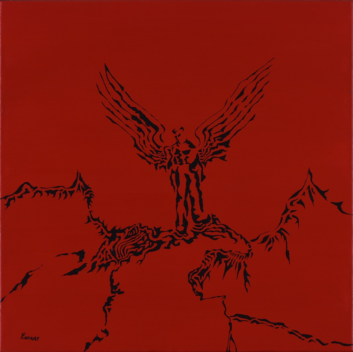 Κλαδιά, ρίζες, δέντρα και φυλλωσιές αναρριχώνται στις κόκκινες επιφάνειες σαν νευρώσεις. Καμιά φορά θυμίζουν αποστεωμένα ζώα και σπονδυλικές στήλες δεινοσαύρων σε Ρωσικό μουσείο φυσικής Ιστορίας. Σίγουρα όμως η αφοσίωση του και το υφολογικό άπλωμα στον χώρο, δημιουργεί ένα νέο τόπο αναφοράς που θυμίζει ματωμένα ποτάμια, ή αντανακλάσεις ηλιοβασιλέματος σε ήσυχα νερά, όπως τα νούφαρα του Claude Monet έγιναν φλεβώσεις σύγχρονου προβληματισμού. Σαν μια αέναη ταπετσαρία ενός φανταστικού σπηλαίου Λασκώ και με προφητεία που θυμίζει αρχαία μυθολογία, ο Γ. Νίκας κάνει αναφορά στις πλατωνική οντολογική κλίμακα. Αποτυπώνει την ιδέα να ενυπάρχει της υλοποίησης και προσπαθεί να μεταλαμπαδεύσει ακριβώς αυτά τα κρυφά νοήματα.