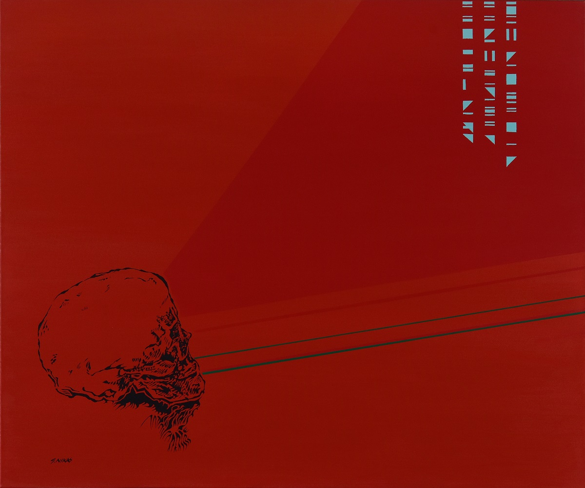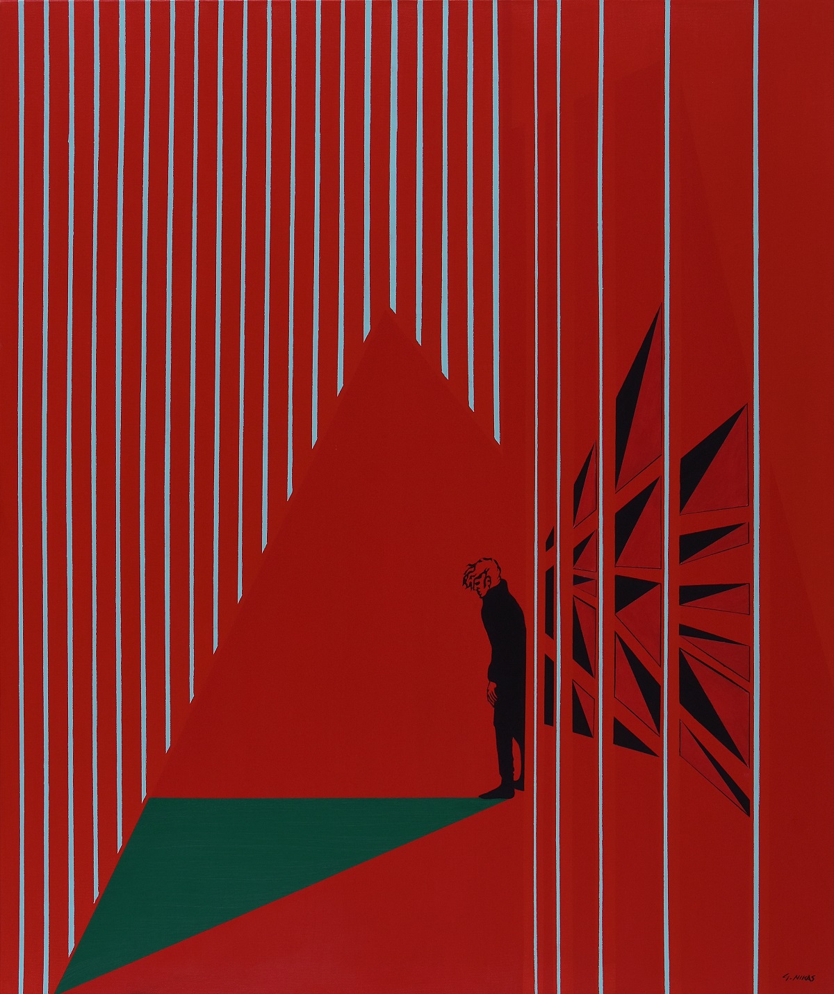 Ως προς το κόκκινο χρώμα, αντιλαμβανόμαστε τον δυναμισμό, την επανάσταση, την αντίθεση αλλά και το χρώμα μια ριζοσπαστικής γενιάς που μάχεται για την ελευθερία. Το μαύρο-κόκκινο είναι συνυφασμένο με την αναρχική σκηνή, όμως ο Γ. Νίκας συνθέτει ένα απολιτικό σενάριο, που αυτές οι αναφορές λειτουργούν μόνο σημειολογικά. Το κόκκινο πεδίο του φόντου, μοιάζει τυπογραφικό αλλά με προσεκτική παρατήρηση βλέπουμε μια χειρονομιακή φαρδιά πινελιά να εξελίσσεται από αριστερά προς τα δεξιά, δίνοντας μια υφή που θυμίζει σύγχρονα ευτελή υλικά όπως πλαστικό.