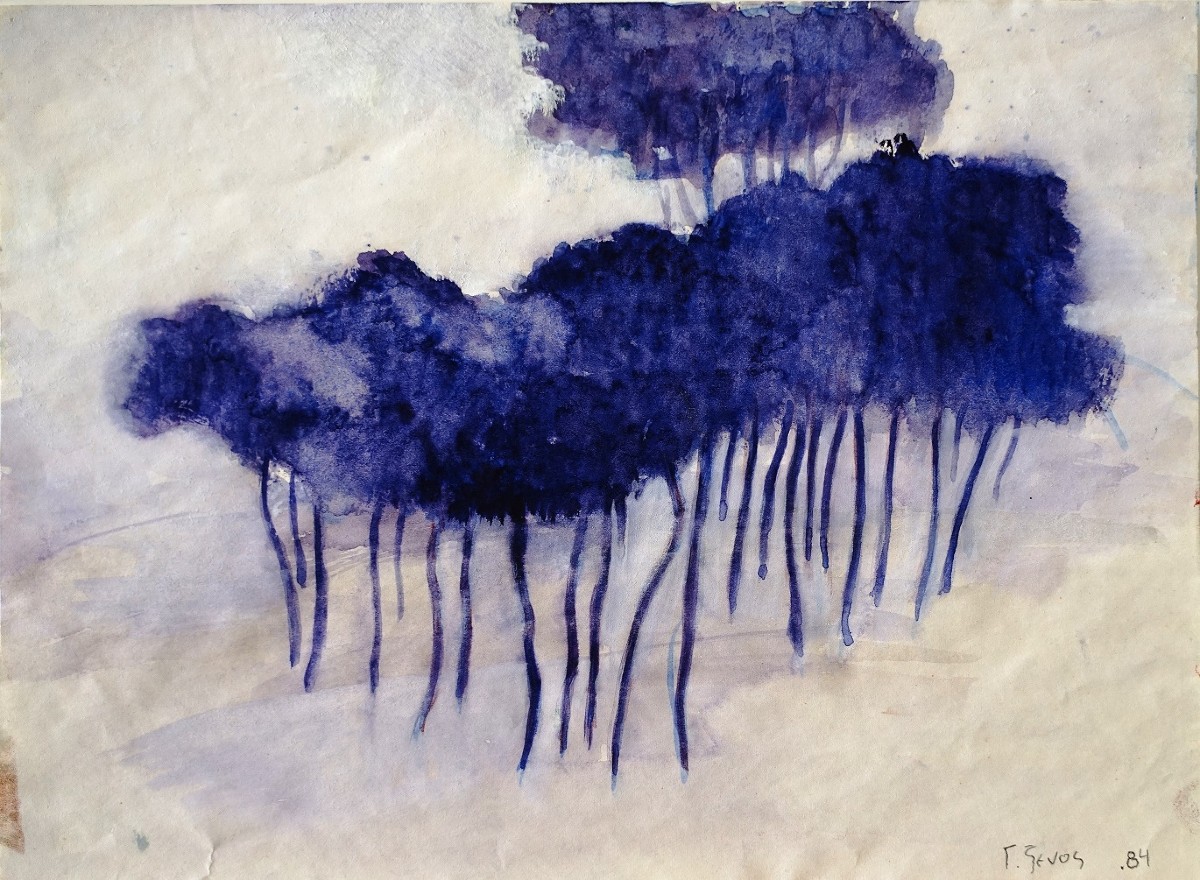 Το ακέφαλο σώμα μάς κοιτάζει από το βάθος του μαύρου καθρέφτη. Η ψυχαναλυτική ανάγνωση εγκαθίσταται μέσα στο πλήθος των θεατρικών σκηνών. Γενεαλογίες μοναχικών σκεπτόμενων απέναντι στον μέλανα ήλιο και ανώνυμα πλήθη χωρίς πρόσωπο αλληγορούν καταστροφές της ιστορίας και την εξορία τους. Η αρχειακή τους συνθήκη κινητοποιεί έναν πολιτικό χώρο πέρα από το θέμα και την εικονογραφία. Η μπλε μινιατούρα, παράταιρη, μοναδική χωρίς αρχειακή οικογένεια ονομάζει το χρώμα. Και ο εξόριστος ποιητής μας παρατηρεί από το βάθρο.