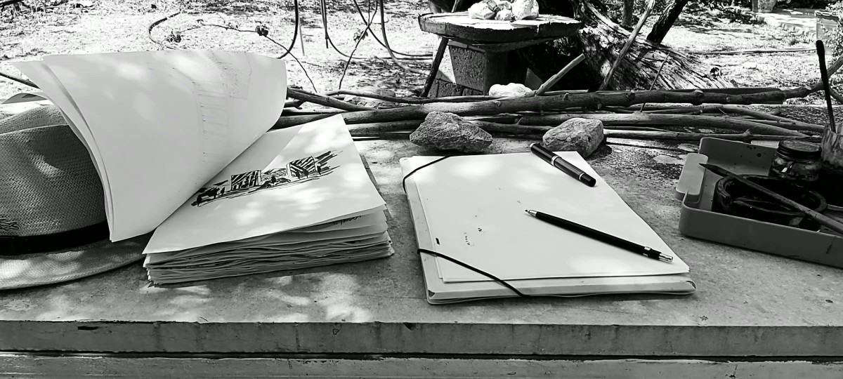 Δημόσιες “τοιχογραφίες” χωρίς όρια εναλλάσσονται με ζωγραφικές “μινιατούρες” και απροσπέλαστα αρχεία σχεδίων. Αρχετυπικές εικόνες του οίκου και άδειων εσωτερικών, λαβύρινθοι, άνθρωποι-αριθμοί, σκιές, κρυπτικές καταγραφές, γρίφοι, δημιουργούν μέσα από ατέρμονες επαναλήψεις, ανησυχητικές τοπογραφίες εγκλεισμού και διάνοιξης, περισυλλογής και κατάδυσης στον εαυτό, σε μαύρο/άσπρο. Το όνειρο ως ακατάληπτη γραφή σε εικόνες δεν ονειροπολεί, σκέπτεται. Κρύβει ιερόγλυφα του τραύματος και αποκαλύπτει φόβους και εμμονές.