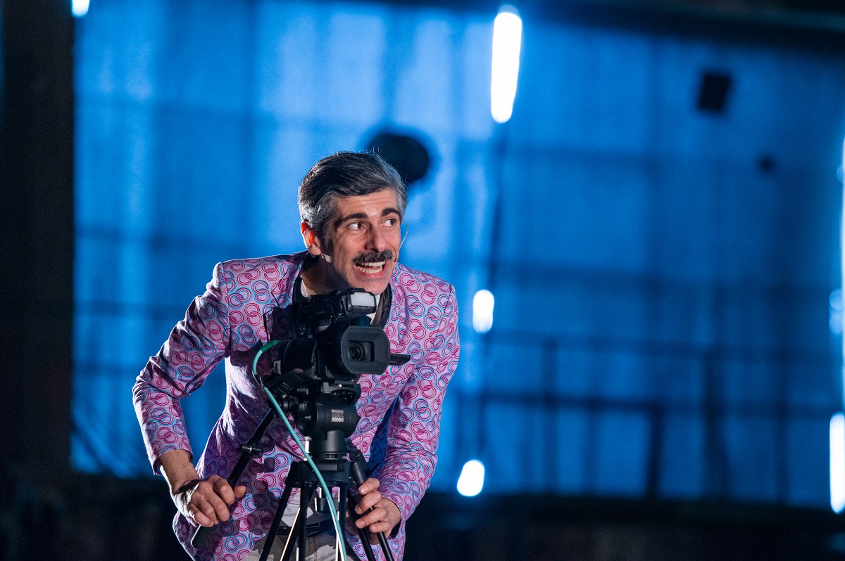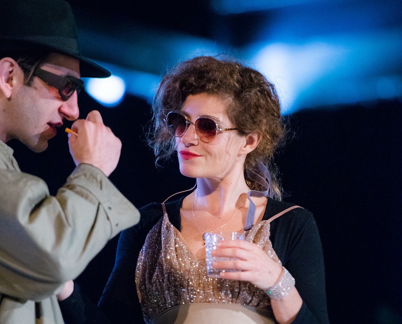 Ολόκληρο το έργο, άλλωστε, είναι μια φαντασμαγορική μίξη θεάτρου και κινηματογράφου, μ’ ένα λαμπερό σύνολο ηθοποιών απ’ όλες τις γενιές του ελληνικού θεάτρου – Πυγμαλίων Δαδακαρίδης, Έκτορας Λυγίζος, Άρης Μπαλής, Ελένη Μπούκλη, Αλέξανδρος Μυλωνάς, Αντώνης Μυριαγκός, Δημήτρης Παπανικολάου, Δημήτρης Πασσάς, Δημήτρης Πιατάς, Άλκηστις Πουλοπούλου, Χάρης Φραγκούλης και ο βετεράνος Γιάννης Βογιατζής.