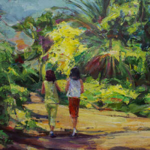 Κεντρική εικόνα θέματος: Τάσος Δήμος, «Κορίτσια στον Εθνικό Κήπο», ακρυλικά σε μουσαμά