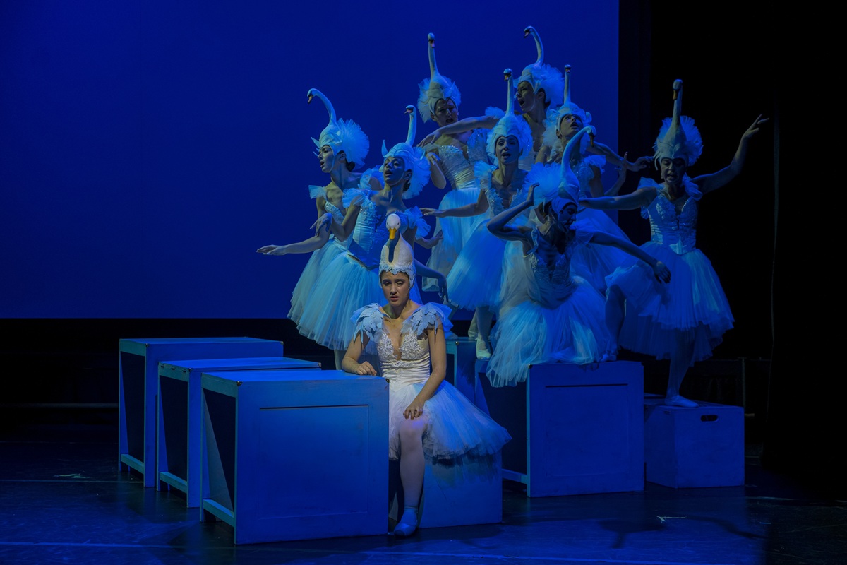 - Ιζαντόρα: Λυδία Στέφου • Δασκάλα – Αφηγήτρια, Κυρία Χόιτυ Τόιτυ, Κυρία Παπώφ: Μαργαρίτα Συγγενιώτου • Κύριος Κουντεπιέ: Μάριος Σαραντίδης • Μαθήτρια, Κύκνος, Παπίτσα: Ιώ Λατουσάκη • Μαθήτρια, Κύκνος, Πιπίτσα: Γεωργία Κυριαζή • Μαθήτρια, Κύκνος, Νεαρή πάπια: Ραφαέλα Τσομπανούδη • Μαθήτρια, Κύκνος, Αλεπού: Ηλιάνα Υφαντή • Μαθήτρια, Κύκνος, Κυνηγός, Πολύχρωμο πουλί της λίμνης: Μυρσίνη Πετρούτσου • Μαθήτριες, Κύκνοι, Πολύχρωμα πουλιά της λίμνης: Ιωάννα Λουπέτη, Άννα Μαρία Μαρκοπούλου, Ελένη Φώτου • Βάτραχος, Λύκος: Χρήστος Ντέντης (Onel) • Ζευγάρι προσκεκλημένων χορευτών από τη Λίμνη των Κύκνων: Ίγκορ Σιάτζκο / Πόπη Σακελλαροπούλου (χορευτές του Μπαλέτου της ΕΛΣ)