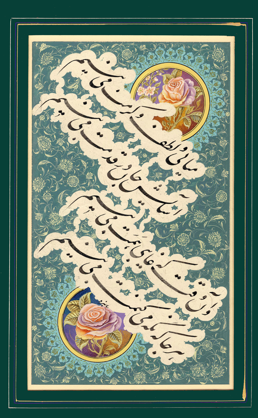 Το δεύτερο τμήμα της έκθεσης εστιάζει στην τέχνη της σύγχρονης καλλιγραφίας μέσα από τα έργα του Ιρανού καλλιγράφου Μουσταμπά Σαμπζέ, ο οποίος εκθέτει έργα με ποιητικό και θρησκευτικό περιεχόμενο για πρώτη φορά στην Ελλάδα, παρέχοντας την ευκαιρία στους επισκέπτες να γνωρίσουν μία σημαντική πτυχή της σύγχρονης τέχνης της Μέσης Ανατολής.