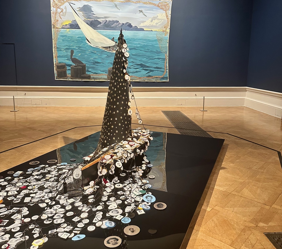 Ένα μοντέλο ιστιοφόρου σε μαύρο Plexiglass φαίνεται να τραβά ένα δίχτυ με πορτρέτα-μετάλλια – αντικαθιστώντας τους απογόνους των πρώτων είκοσι υποδουλωμένων Αφρικανών που έφτασαν στο Jamestown της Βιρτζίνια το 1619. Το σκάφος του πένθους συνεχίζει να μεγαλώνει καθώς ο Marshall προσθέτει νέα πορτρέτα, αντικατοπτρίζοντας την εκτεινόμενη παρουσία και τα πολλαπλασιαζόμενα επιτεύγματα των Αφροαμερικανών.