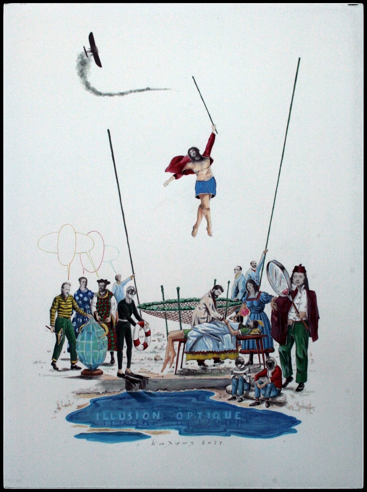 Η όλη πλάνη «χωρο-γραφείται» από τον Χάρη Κοντοσφύρη, με τη διαχείριση της αστοχίας του αισθητού με το νοητό. Ως αλληλεπιδραστής επιχειρεί την καταγραφή της διάδρασης ανάμεσα στην παρουσία και στην απουσία, ως ολικής ψευδαίσθησης, βιωματικής ή/και επινοημένης, ώστε να καταστεί σαφές ότι η ανθρώπινη κοινή λογική αποπροσανατολίζει την απόλαυσή της.