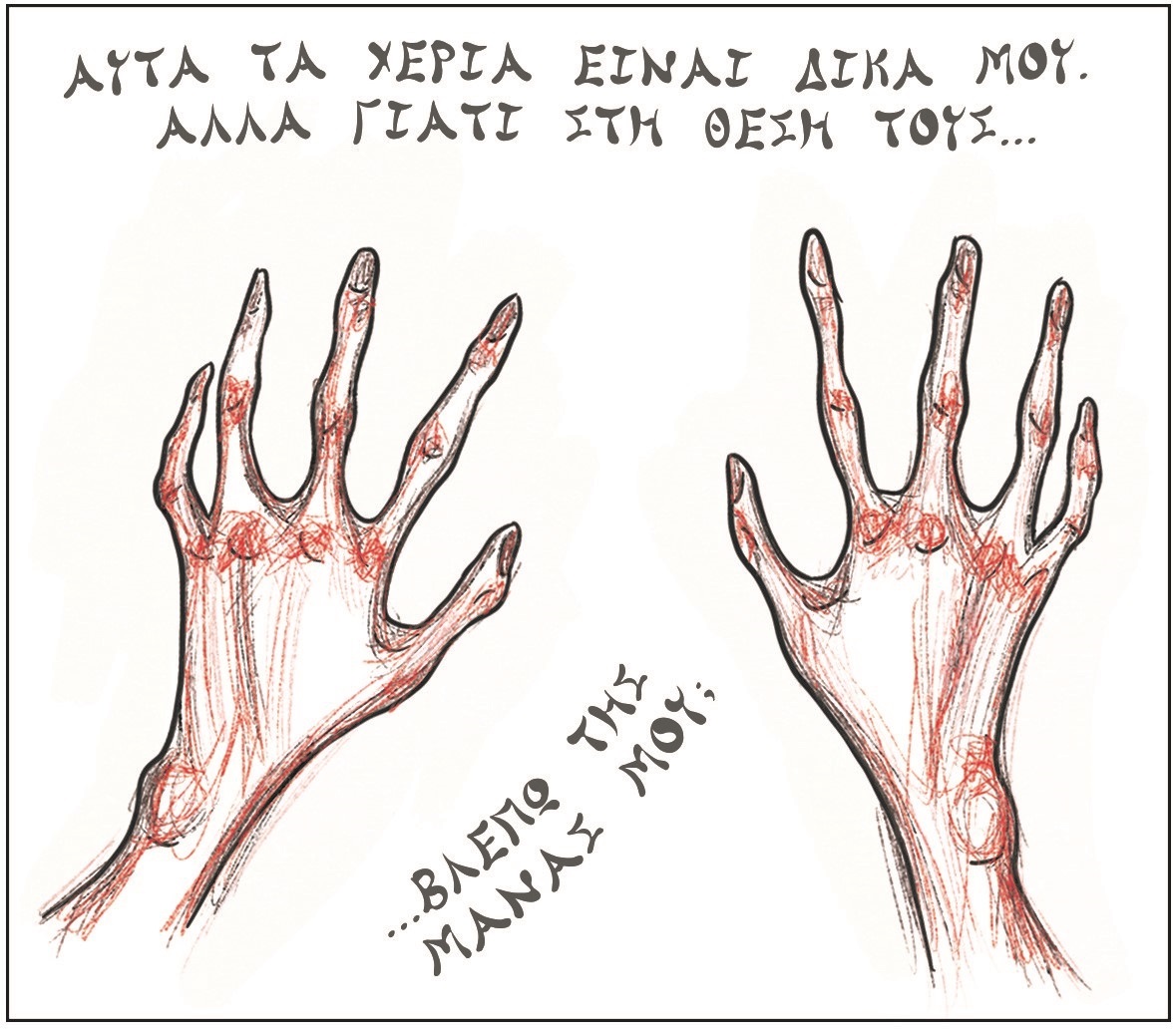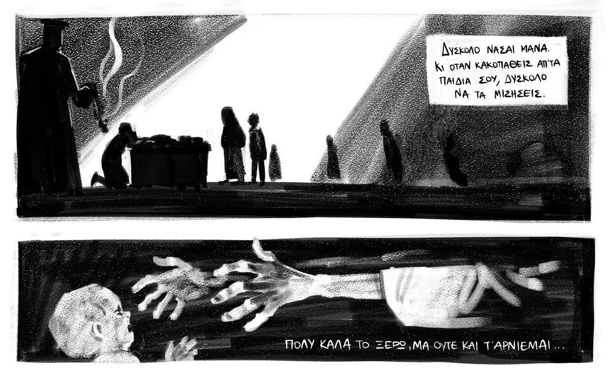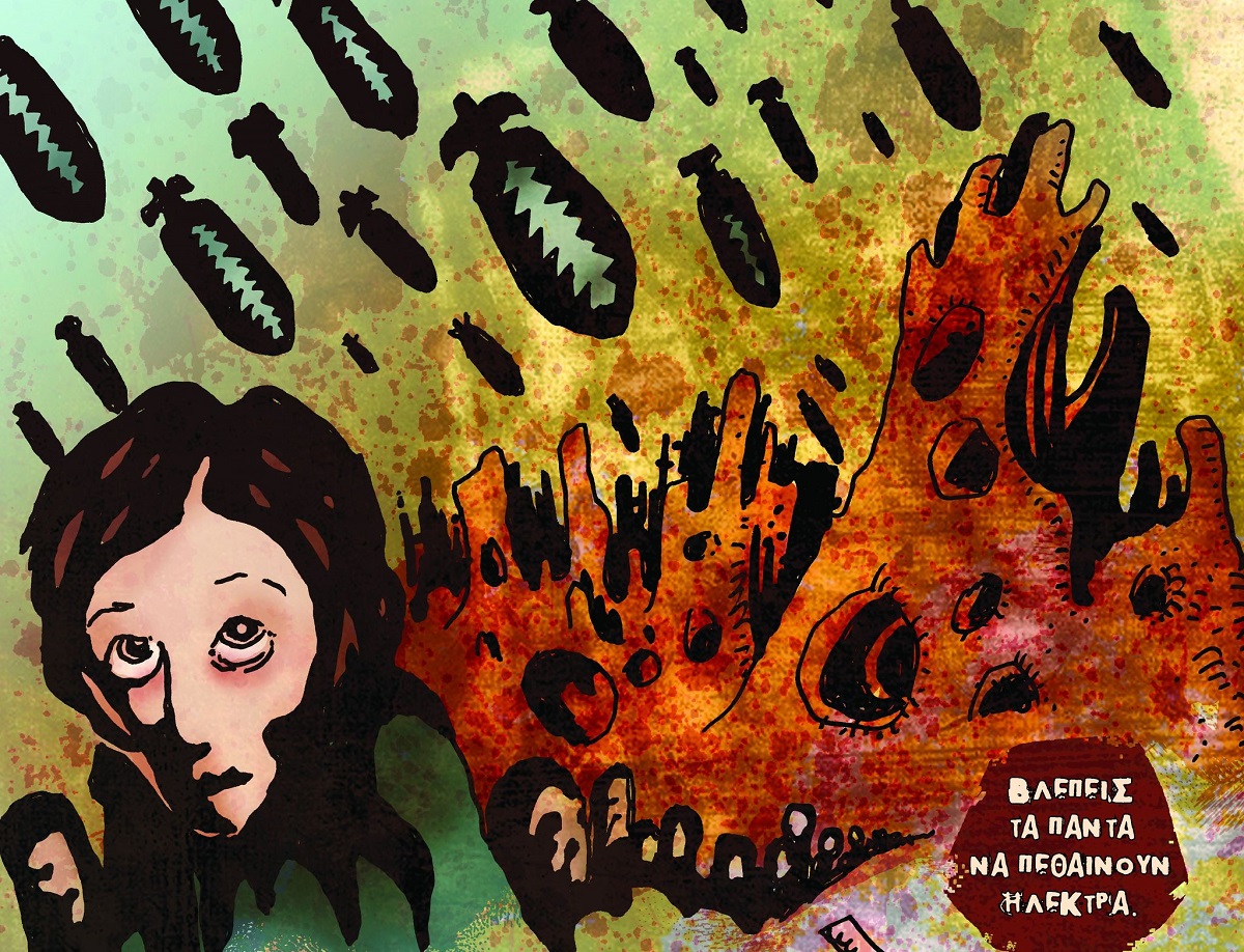 Τα δράματα αυτά καταγράφονται συχνά από τα ΜΜΕ όχι απλώς σαν αυτοτελή περιστατικά, αλλά σαν επεισόδια μιας ιστορίας: ο θεατής/αναγνώστης ακολουθεί την πλοκή από την αρχή μέχρι την κλιμάκωση της δράσης και την όποια κατάληξή της. Ακριβώς αυτή η αφηγηματική δομή, η σύγκρουση των χαρακτήρων και η πορεία μέχρι τη λύτρωση είναι στοιχεία που συναντά κανείς και στα κόμικς: την εικονογραφική απόδοση ιστοριών μέσα από τις οποίες ο αναγνώστης (κοιτά)ζει πάθη, καταστάσεις οικείες και ανοίκειες, φιγούρες κωμικές και τραγικές. Στην παρούσα έκθεση, η Ηλέκτρα ανάγεται σε πρόσωπο-σύμβολο της εκδίκησης και του ηθικού χρέους, γίνεται θύμα και θύτης, και αξιοποιείται από τους δημιουργούς για να αποδοθούν σύγχρονα διλήμματα, ιστορικά γεγονότα και κοινωνικές ανισότητες.”.