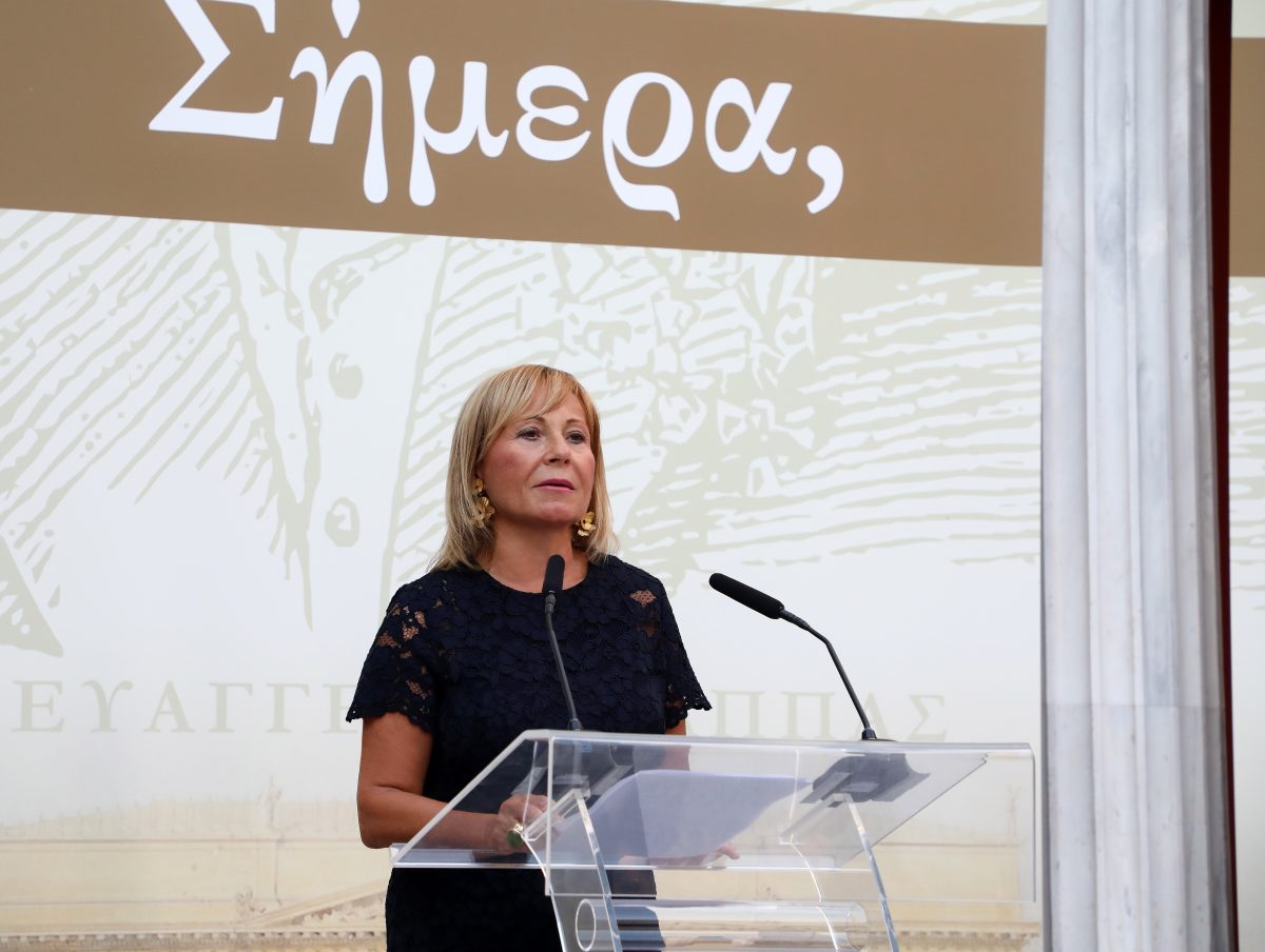 Πρώτη πήρε τον λόγο η Προέδρος του Δ.Σ. της Επιτροπής Ολυμπίων και Κληροδοτημάτων, κα Χρυσάνθη (Χριστίνα) Βαγενά. Στον χαιρετισμό της αναφέρθηκε στην μοναδική προσωπικότητά του Ευαγγέλη Ζάππα ενώ υπογράμμισε πως το Ζάππειο εκ της ανέγερσής του είναι ο «φυσικός» χώρος για την απόδοση τιμής σε όσους συνεχίζουν να ενστερνίζονται το ιδεώδες του πατριωτισμού στις ημέρες μας: «Στόχος του παρόντος Διοικητικού Συμβουλίου είναι να βραβεύουμε κάθε χρόνο με το Χρυσό Μετάλλιο του Ευαγγέλη Ζάππα, τους ευεργέτες του σήμερα. Να αναδεικνύουμε τους ανθρώπους, που αντί να προσδεθούν στο άρμα της φιλοκέρδειας, επιλέγουν να προσφέρουν στην κοινωνία που δοκιμάζεται, χωρίς να περιμένουν ανταποδοτικά οφέλη ή να επιδιώκουν την πάνδημη αναγνώριση.