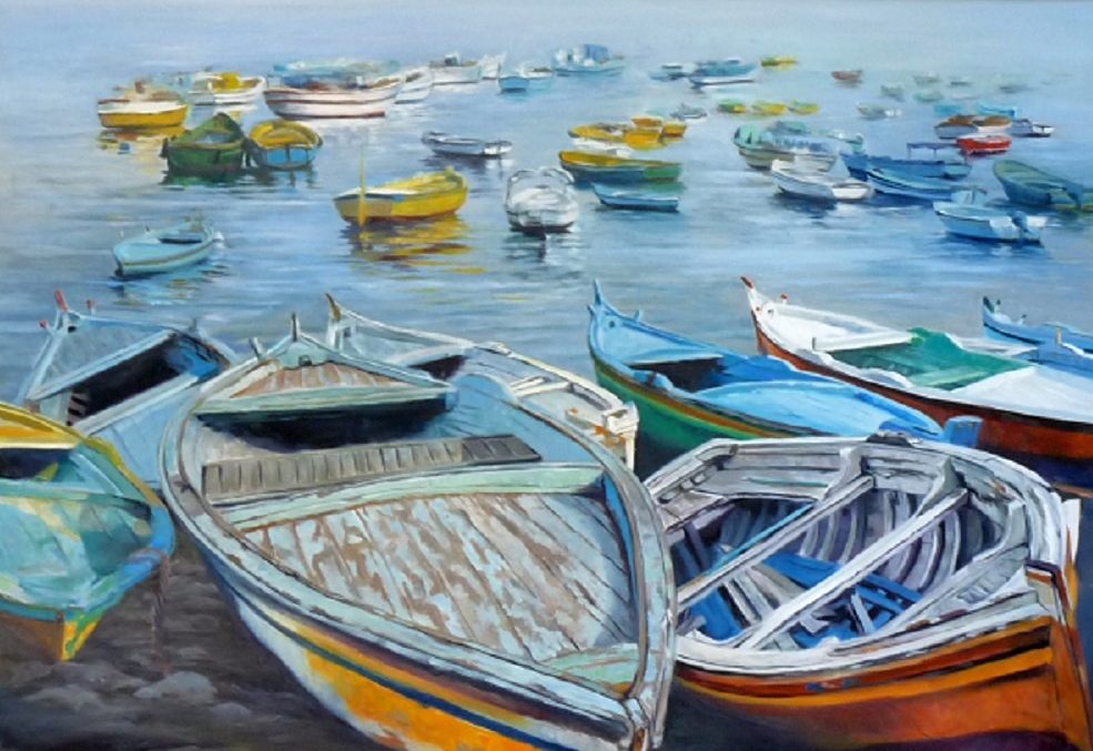 Στο έργο της Gilda Frumkin, ο άνθρωπος είναι παρών μέσα από το πέρασμα του. Συναντάμε κουπιά, σημαδούρες ή σκοινιά κάβων ριγμένα –βαριές αλυσίδες– που ταξιδεύουν όλα γητεμένα μέσα στον μεταφυσικό ρεαλισμό τους. Η πινελιά εκφράζεται αλλού ιμπρεσσιονιστική, πότε διαστρεβλώνει τον ρεαλισμό της και γίνεται αφαίρεση, ένα εικαστικό περιβάλλον, όπου ο συμβολισμός της εικόνας συναντά τον εξπρεσιονισμό του συναισθήματος και γεννούν μαζί μια πρωτόγνωρη υπαρξιακή κατάσταση· με τον λυρισμό και την καλλιτεχνική ευαισθησία να υπογραμμίζουν την αξία της διαδρομής…