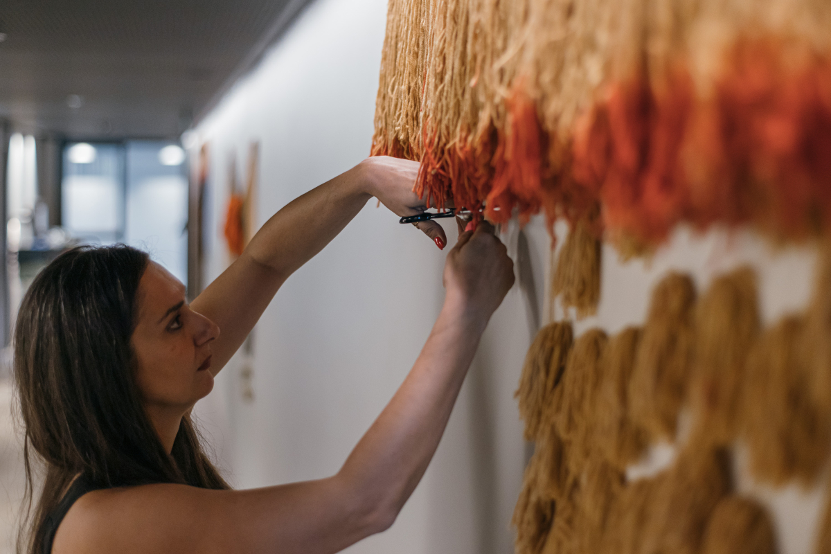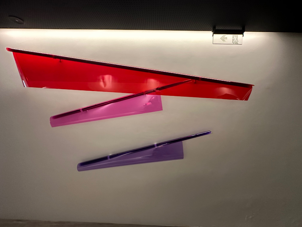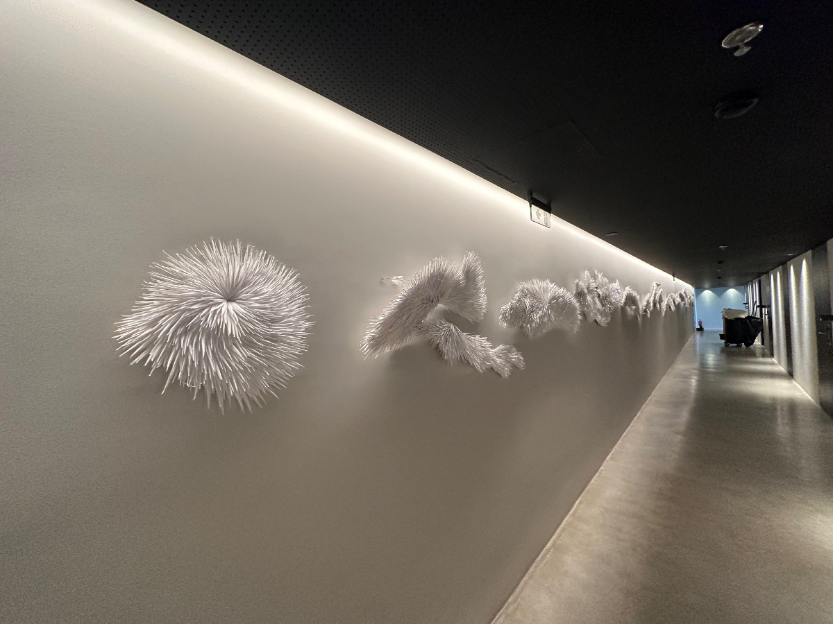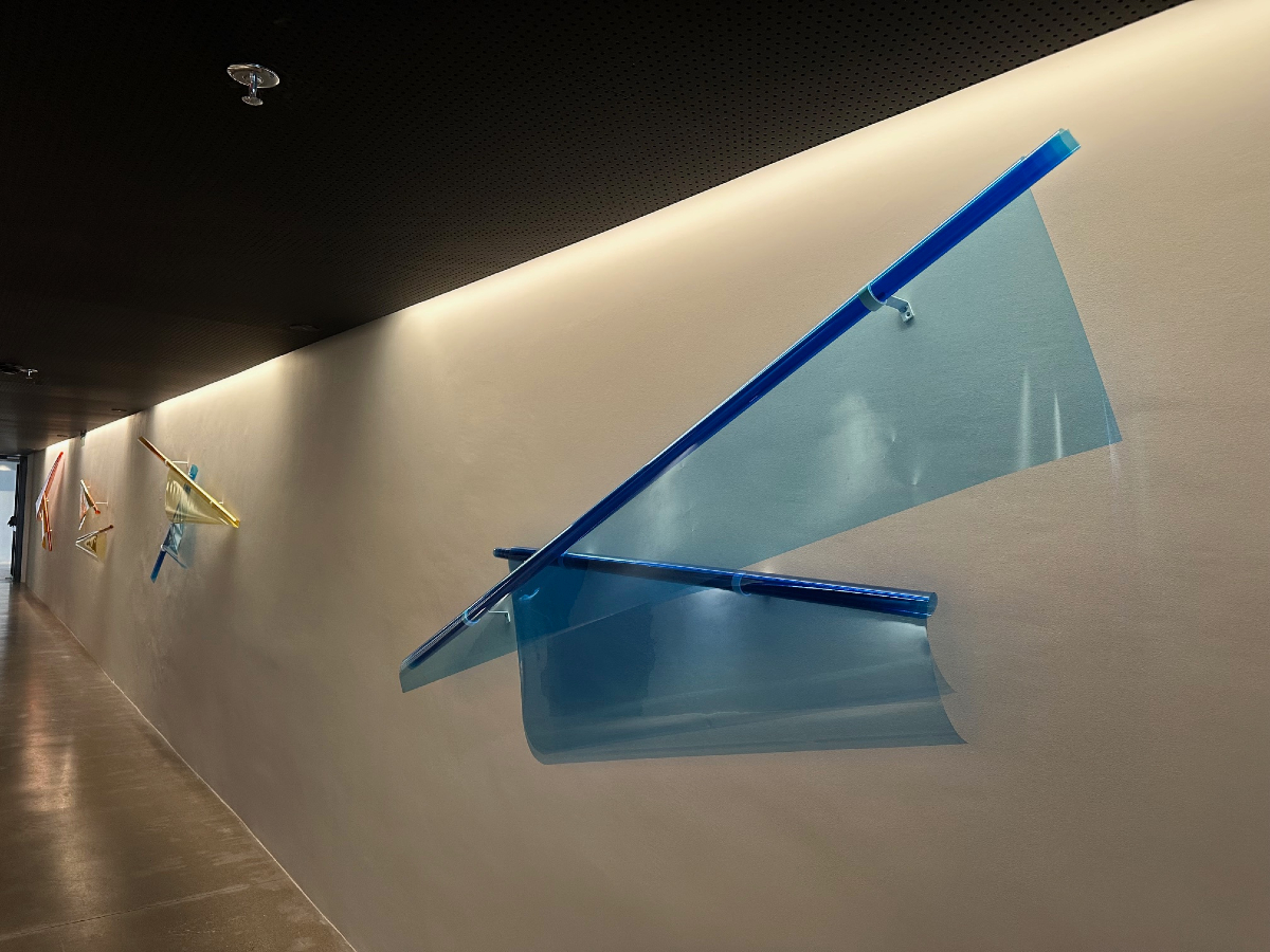 Στην επίσκεψη είχαμε επίσης την ευκαιρία να περιηγηθούμε στα έργα των περσινών τριών νικητών του Βραβείου Τέχνης, που θεσπίστηκε το 2019 και δόθηκε για τρίτη χρονιά, για πρώτη φορά σε τρεις καλλιτέχνες που εργάστηκαν in situ, τη Μάρω Φασουλή για τα εντυπωσιακά υφασμάτινα φολκ γλυπτά Nomadic Murals, τον Αλέξανδρο Λάιο για την pvc έγχρωμη διάφανη επιτοίχια εγκατάσταση Day και την Ami Yamasaki για το εκπληκτικά απόκοσμο φτερωτό χάρτινο origami Whispers travel and whisper to you again.